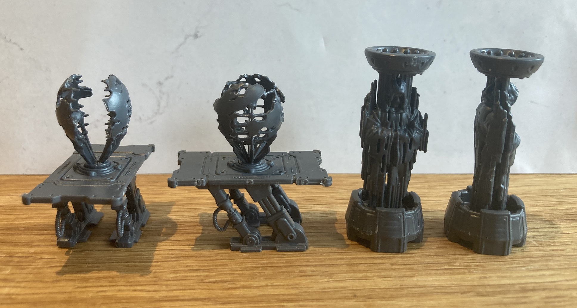 4x tiny dragons - Smaller than you expected but you can cut one or more from and assemble them separately to the dias perched on. There are servicable little wyrmlings for RPG's and small enough you dont need to detail them, just paint them four strong colours. Adventurers are more likely to encounter wyrmlings than other dragons and they could be encounter threats or plot mcguffins.