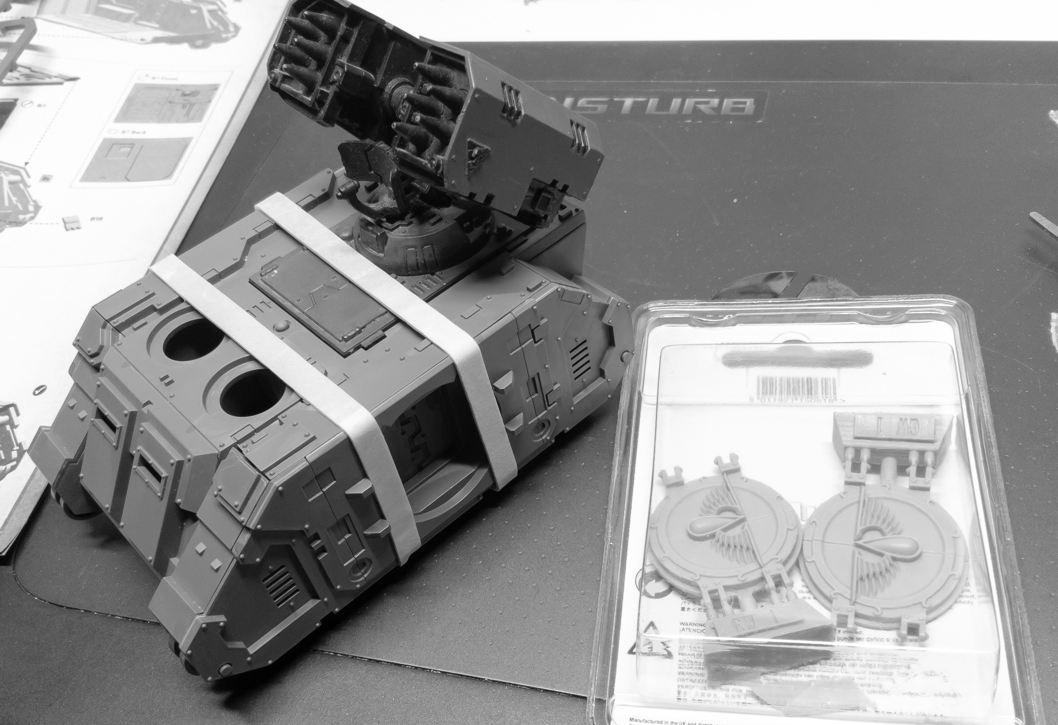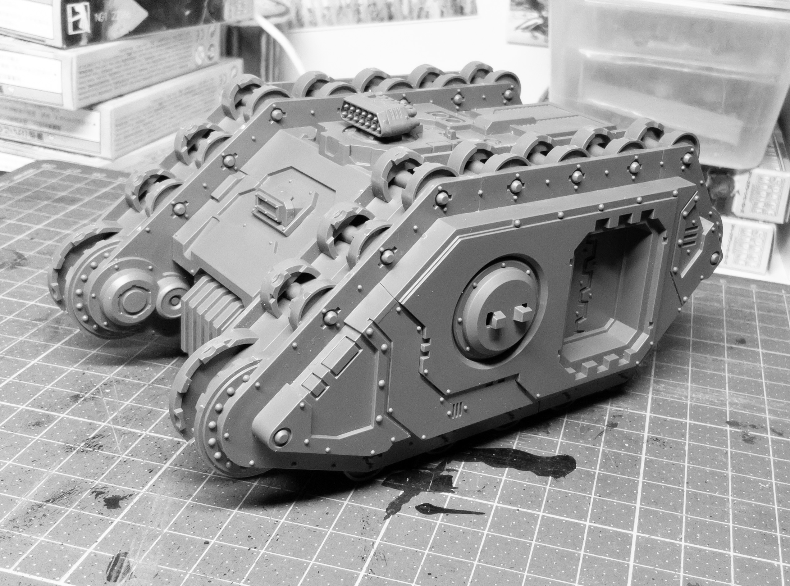 The new Land Raider Proteus Epic kit is a slight disappointment. The way the pieces are cut make cleaning the gates from the tracks cleanly almost impossible. Also, ended up messing up one of the lascannon sponson assemblies, too damn fiddly and glue spilled on the exposed lascannon details..