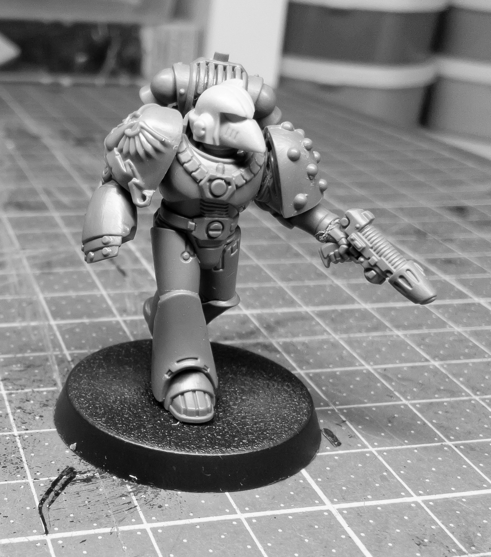 Troops will mainly consist of Mk VI & Mk IV armour. Mk IV armoured helmets are visually somewhat close to the beaked Mk VI armour, and the pauldrons can also be pretty much interchangeable. Mk IV helmet also maintains a visual link to the Primaris Mk X helmet, so this all should hopefully work out to make for a somewhat unified look for the whole infantry.