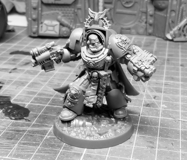 I wasnt happy with the included seregeant models, since they have those weird HH helmet plumes, so weapon swapped a left arm from one of the sergeants and transplanted it onto an Apotechary body. Took a while, was fiddly AF, and in the end I messed up reattaching the arm a bit (looks anatomically wrong when looked from behind the model), but all things considering I did all right! I'm going to be doing more of this sort of bashing going forward..