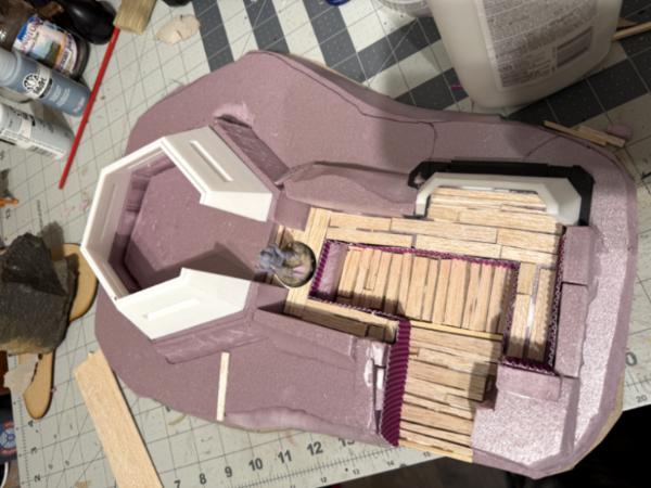 Using some 3-D printed bits and some balsa wood I worked to create a 'second floor under construction' look.