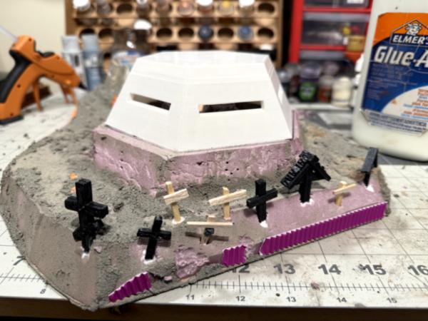 Loving the bunker build- really nice work. I'm a big fan of pink insulating foam board, myself. Very versatile, and easy to work with. Rock on!