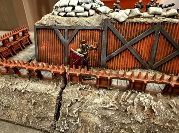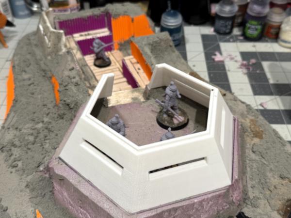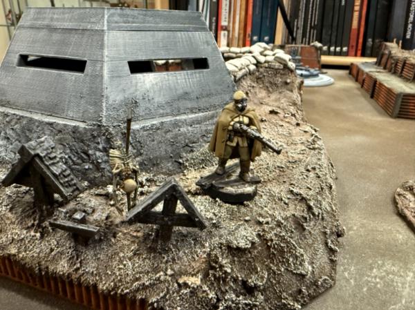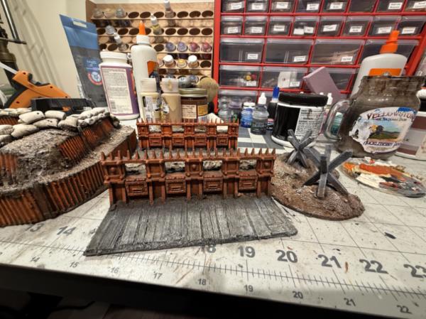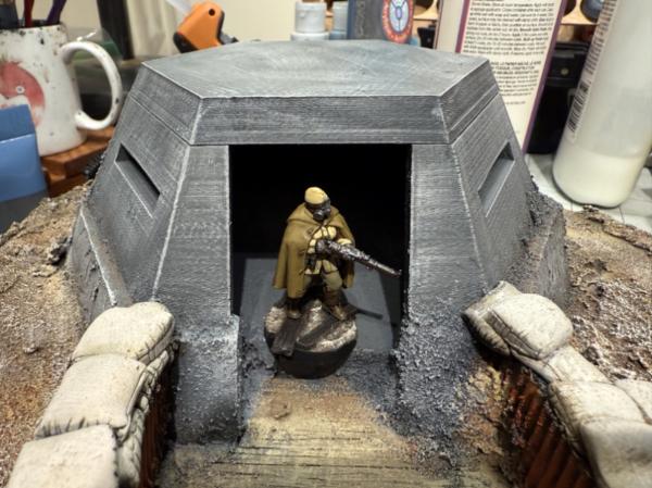I still want to finish three more pieces. The remainder of the GW fronteris trench lines with a concrete hard point (2 pieces) and a full bodied bunker piece. That should fill the board up nicely and give some more terrain options.