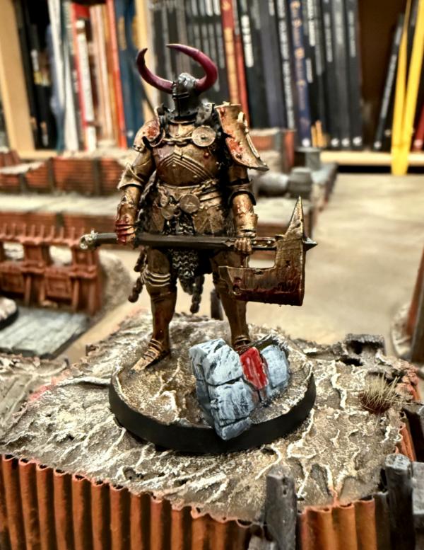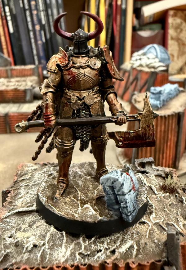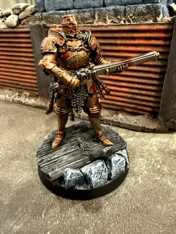 While I love the look of a knight with a rifle, I really like this Axe-man more. The amount of blood on him is very suitable (although nothing like putting more gore on him.)