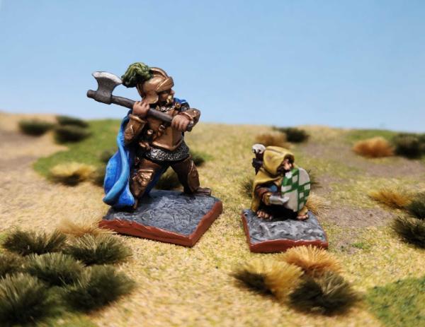 There he is with Bran, the potential startings of a new DnD Party? Haflings and Lesser Goblins were the only minis(?) to be on 15mm bases for a brief time before they were switched to 20mm in 2nd ed fantasy. I quite like the look of the 15mm bases