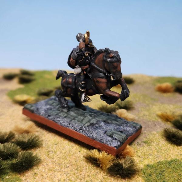 Missing a leg, Missing the weapon, a horse that may or may not have been two different horses  The rider is the mounted Fantasy Adventurers Evil Cleric. Did my best to give him a leg back and a new weapon (although that mace should have been longer lol).