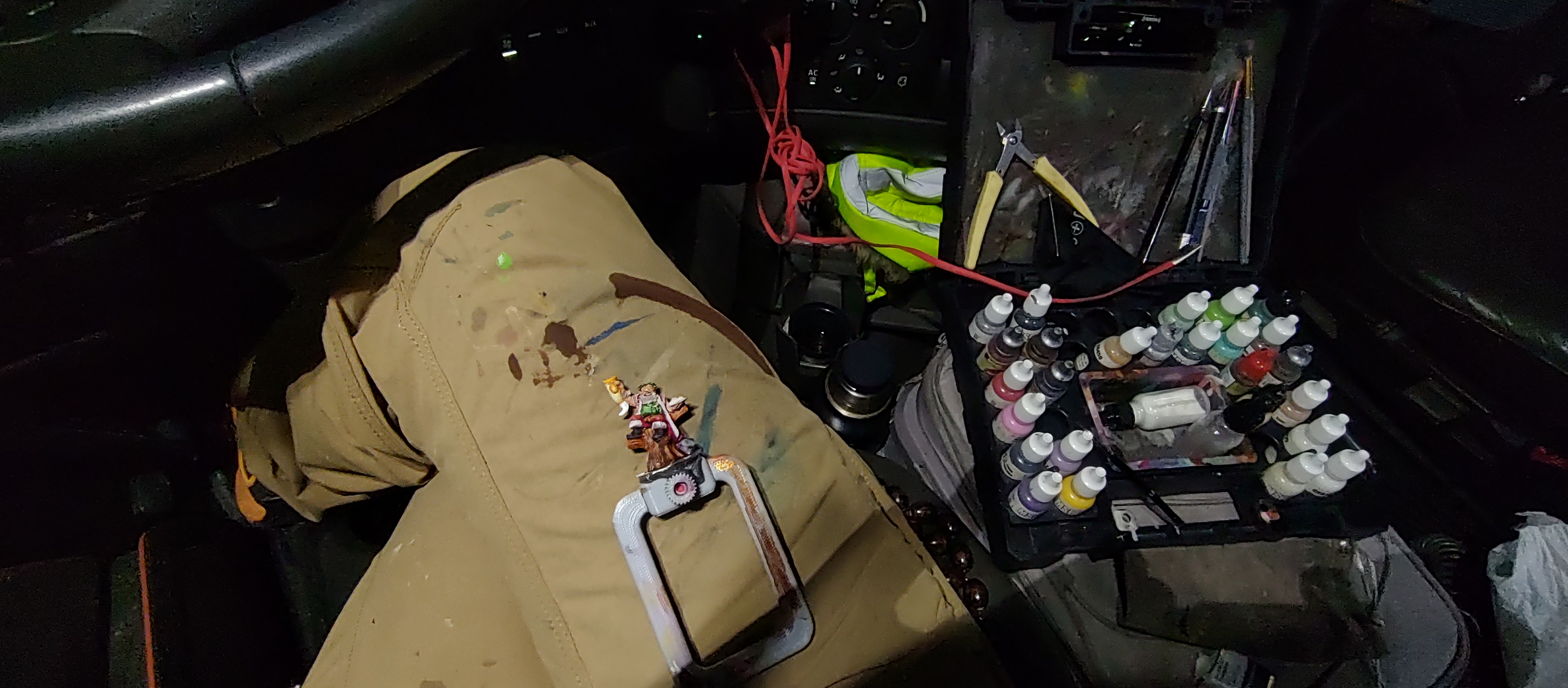 I will try to complete Sprinter transport - alternate Votann vehicle with some kind of catgirl crew . I like the design, in my opinion it looks more simple and utilitarian than GW's model, more like something that explorers of new worlds would use. The interior and crew are painted with grey base. I designed my own frame for glass to use simple transparent foil.