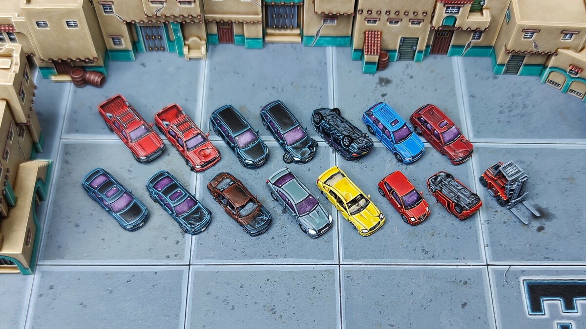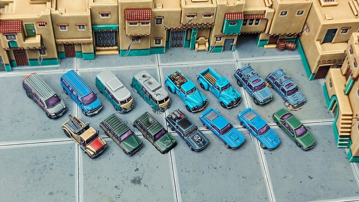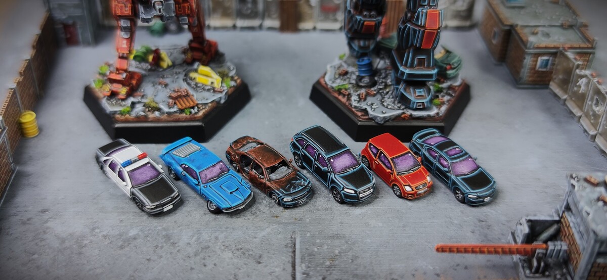 Our base sets fit two main eras, a modern set intended for around the 2010s onward and a more classic era featuring vehicles from the 40s all the way to the early 90s. Of course they can both be mixed for modern eras and beyond, we personally love having some recognisable cars scattered around our battlefields to lend better scale to the towering mechs and giant tanks of the future!