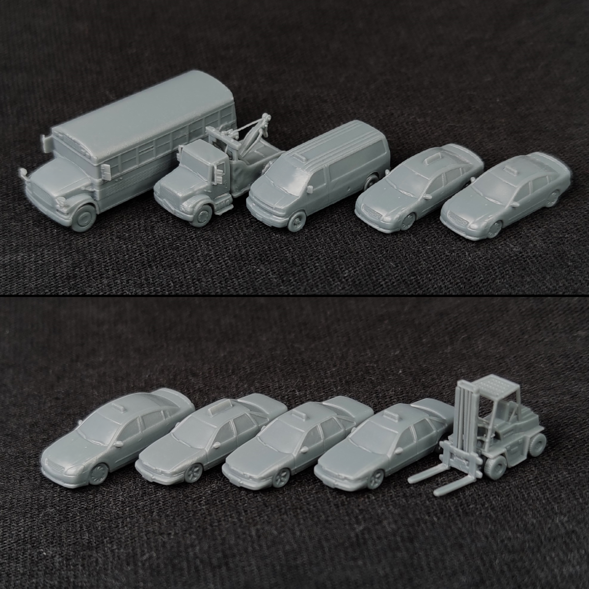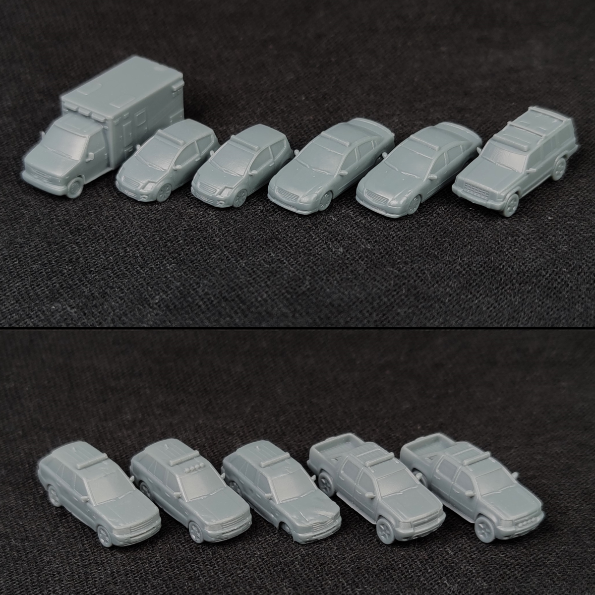 We also have multiple more focussed sets of modern vehicles better suited to those looking to populate a larger city (or maybe just a giant supermarket car park?) where some additional variety would be appreciated. We have four packs of fifteen unique cars featuring a set of hatchbacks, sedans, sports/luxury cars and finally supercars. These packs are not currently available in 1:285 scale however if there is enough interest to support it we’d love to offer them in this scale too. Please excuse the lack of painted photos for these model packs, rest assured they are of the exact same high quality as our painted examples they're just taking a little extra time to complete. Who'd have thought painting sixty tiny cars to display quality would take a while right?