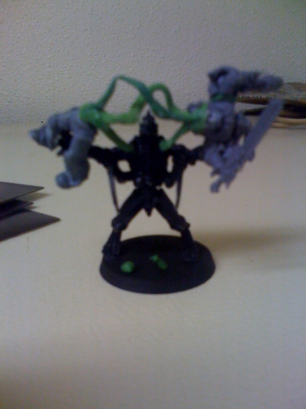 He's only in the beginning stages, but my broodlord tearing a space wolf in half. Damn dogs. Sorry for the low-res pic, don't have a camera other than on my phone.