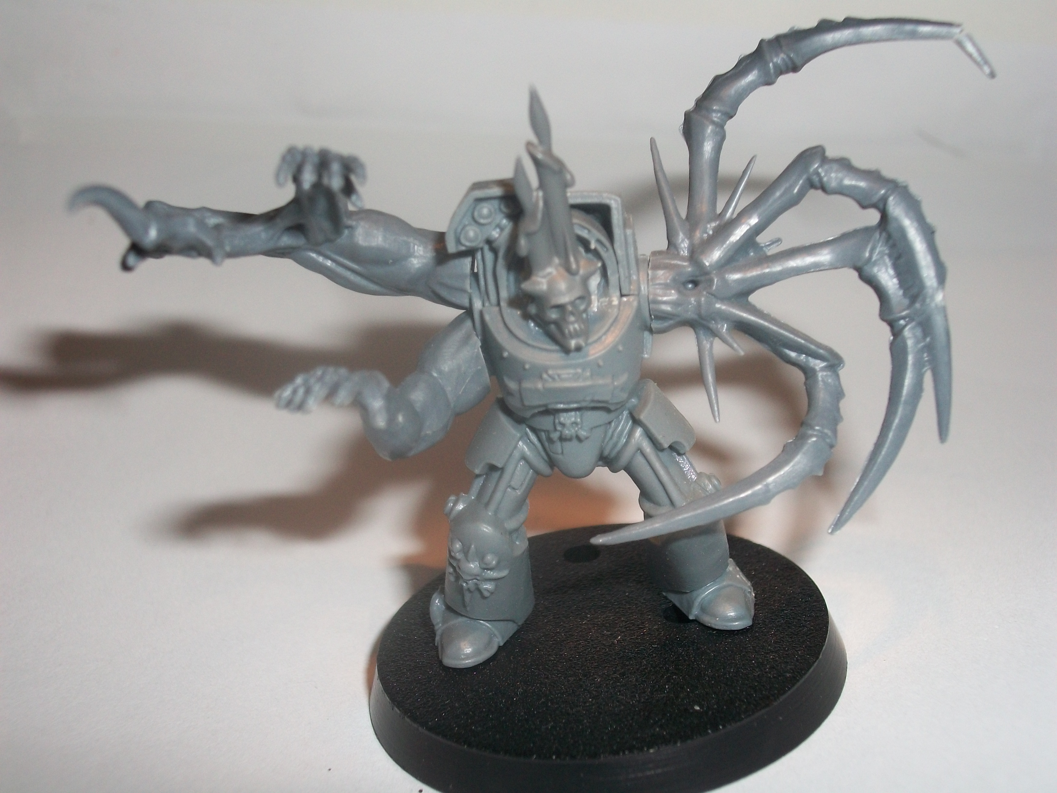 Wow there is some great stuff on here!!! Inspires me to start to get back to work. So much of my stuff is unfinished... my Boar Giant, my Treebeards (dwarven Longbeards), my zombie dwarves... Anyway, while these aren't my best conversions, they are 2 that I like a lot. I thought I'd show off some of my Chaos Space Marines since there are so many 40K lovers on these sites. The first is a Space Marine Librarian that I just stuck a tentacle arm from the chaos spawn kit onto him. The second is a Chaos Terminator with some spawn bits and the head is from the Empire Wizard kit.