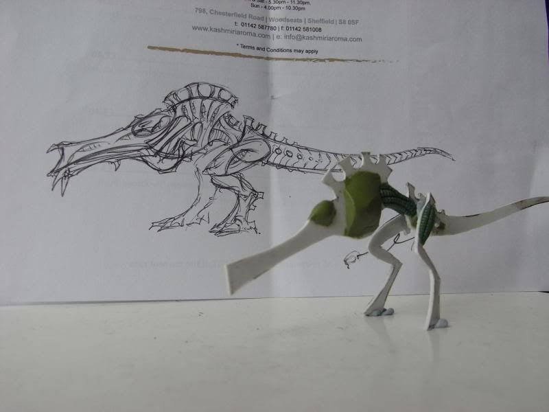 I'll do a sketch of Ynek's walker, I've got a good idea of what it looks like, until it's cast that'll have to do, as both legs use the same components Ynek's only made one and the rest of the model is too big to be held together by blu tack so taking a full pic has so far been very difficult. I believe there are plans for Ynek to produce alternate parts such as legs, cockpits etc. eventually.