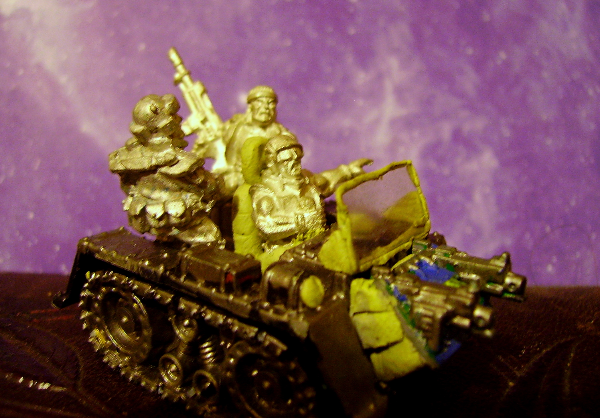 I did a bit more to the vehicle - Its got two passengers instead of the planned big gun as I think it is just too small for that - these guys are like a scouting party or something - they get in fast through rough terrain, assassinate, sabotage and steal then get out quick.