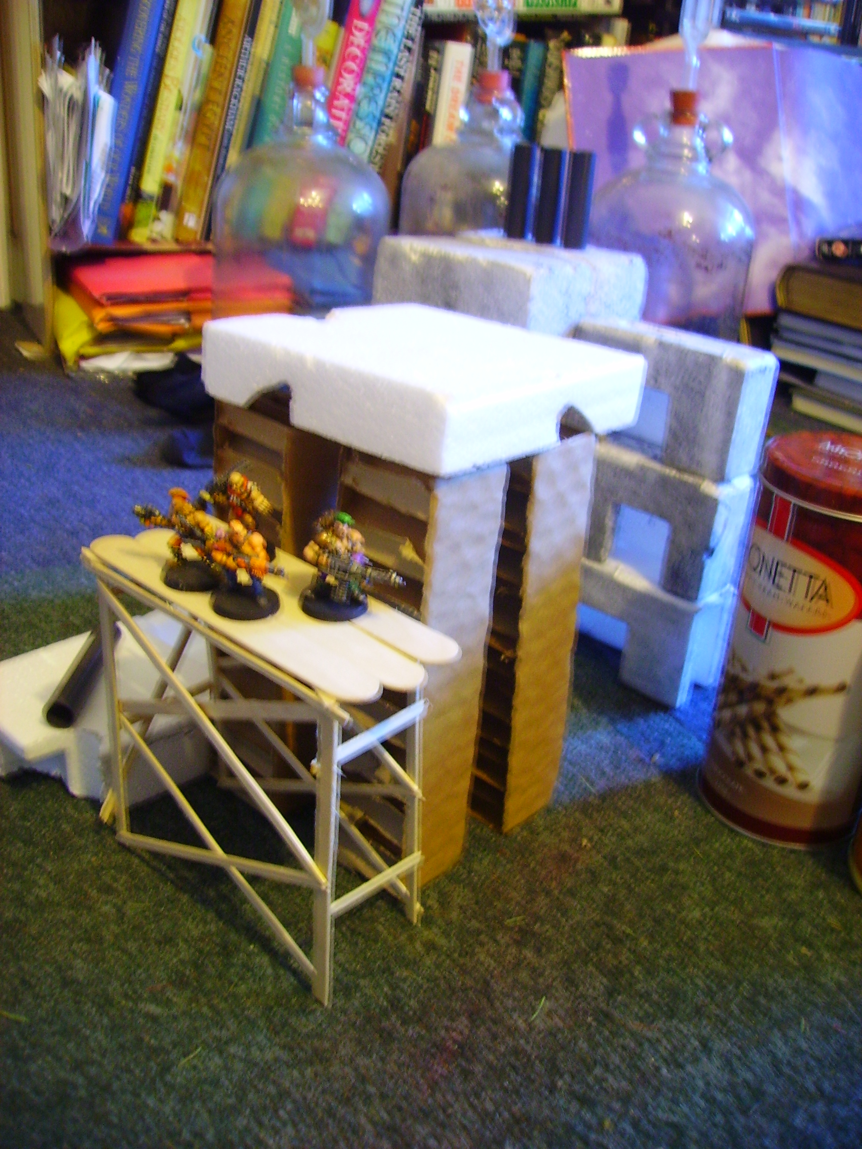 Golly, I could use a bit of that wine about now. I think the cityscape stuff is great, reminds me of the old days where terrain had to be improvised and created from scratch. Way more interesting than any readymade kit stuff.