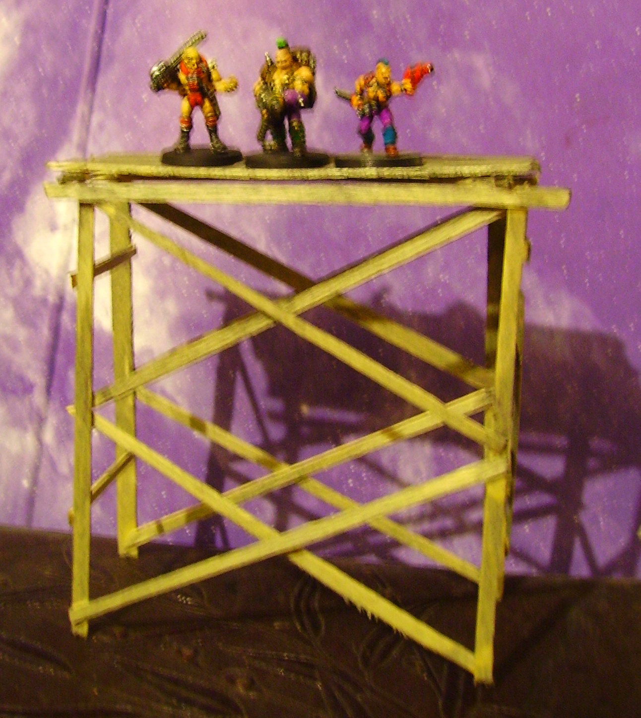 I have found some enormous bits of polystyrene in the cupboard and the trestle walkway is looking finished. No longer looks like its made from lollipop sticks.