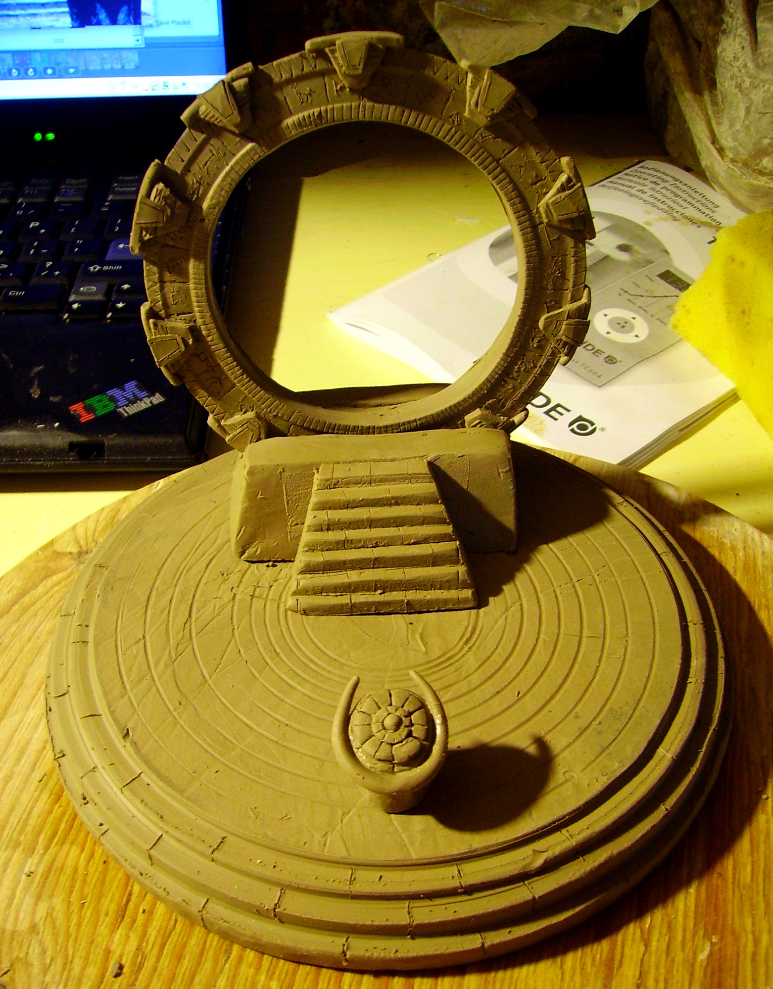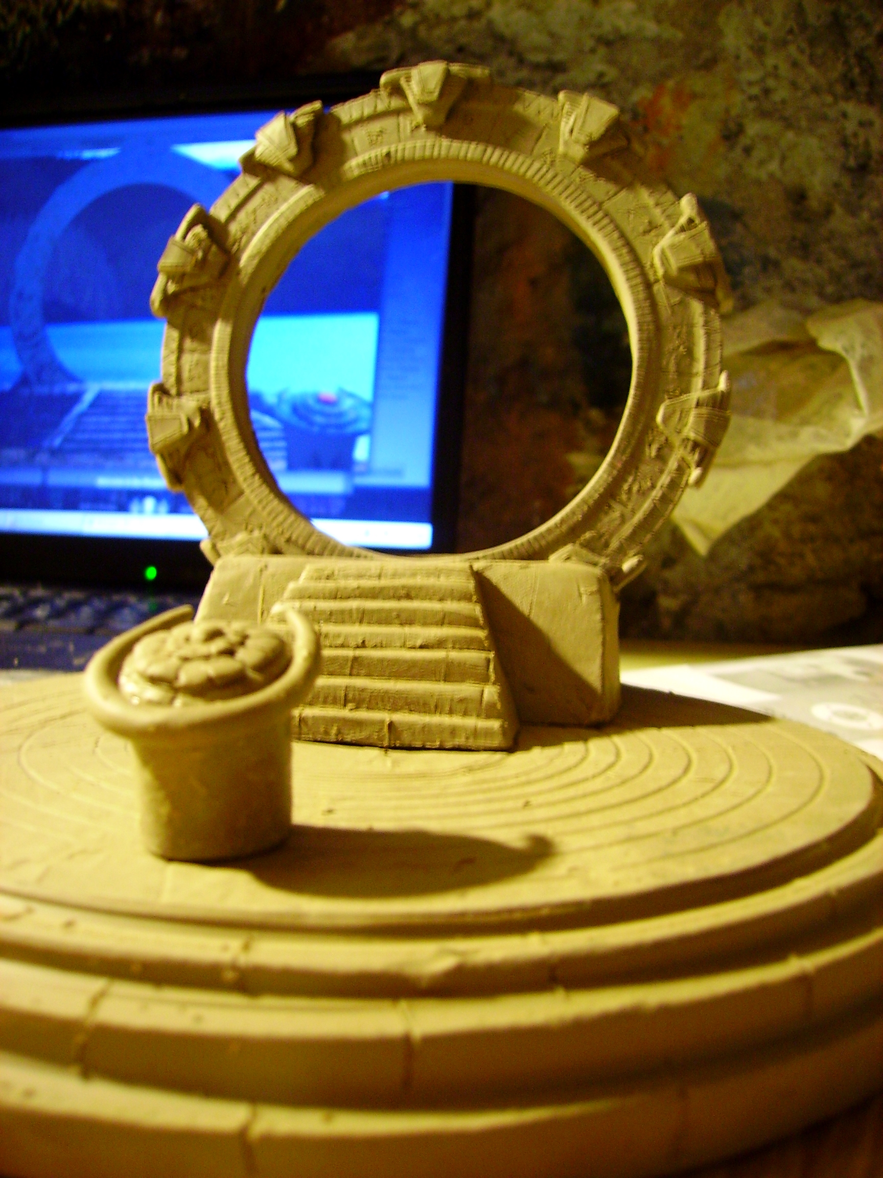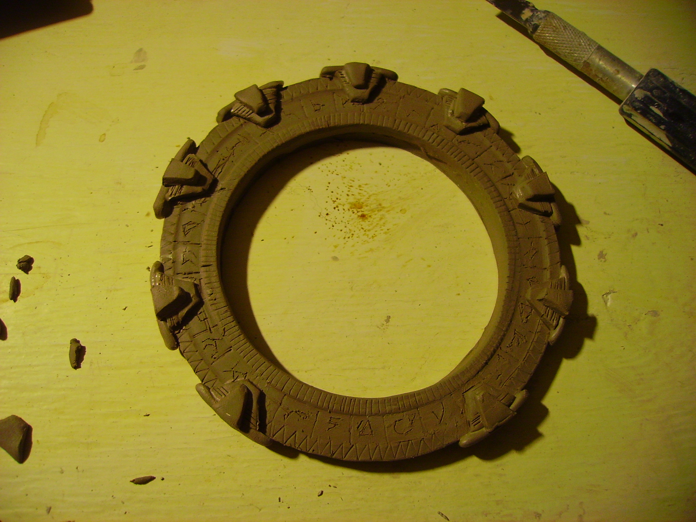 I am smug 2day! It is done and finished. Now firing and glazing is all thats left. The stargate was kept moist with cling film - or sarran wrap as I hear its called in USA. This isn't a permanent solution as cling film is slightly permeable to water.