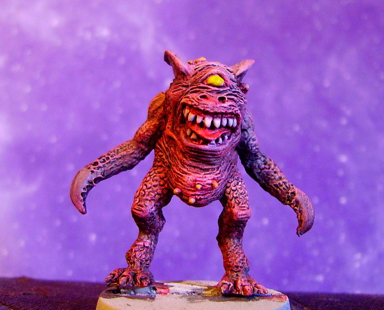 Funnily enough the little one eyed monster does have big teef, lots of em... Here he is - not finished yet