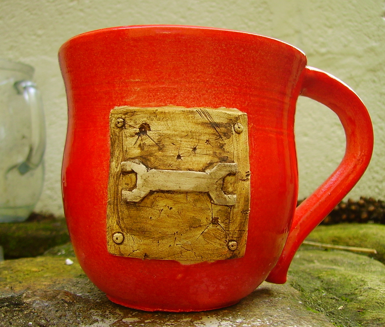 Your right too - that leg is just crying out for something. I was thinking thin swirly ivy patterns in purple - like wall paper! I might make your spanner glyph mug today - depending on how dry the mug body is when I get in. Did you decide what glaze colour/effect you want yet?