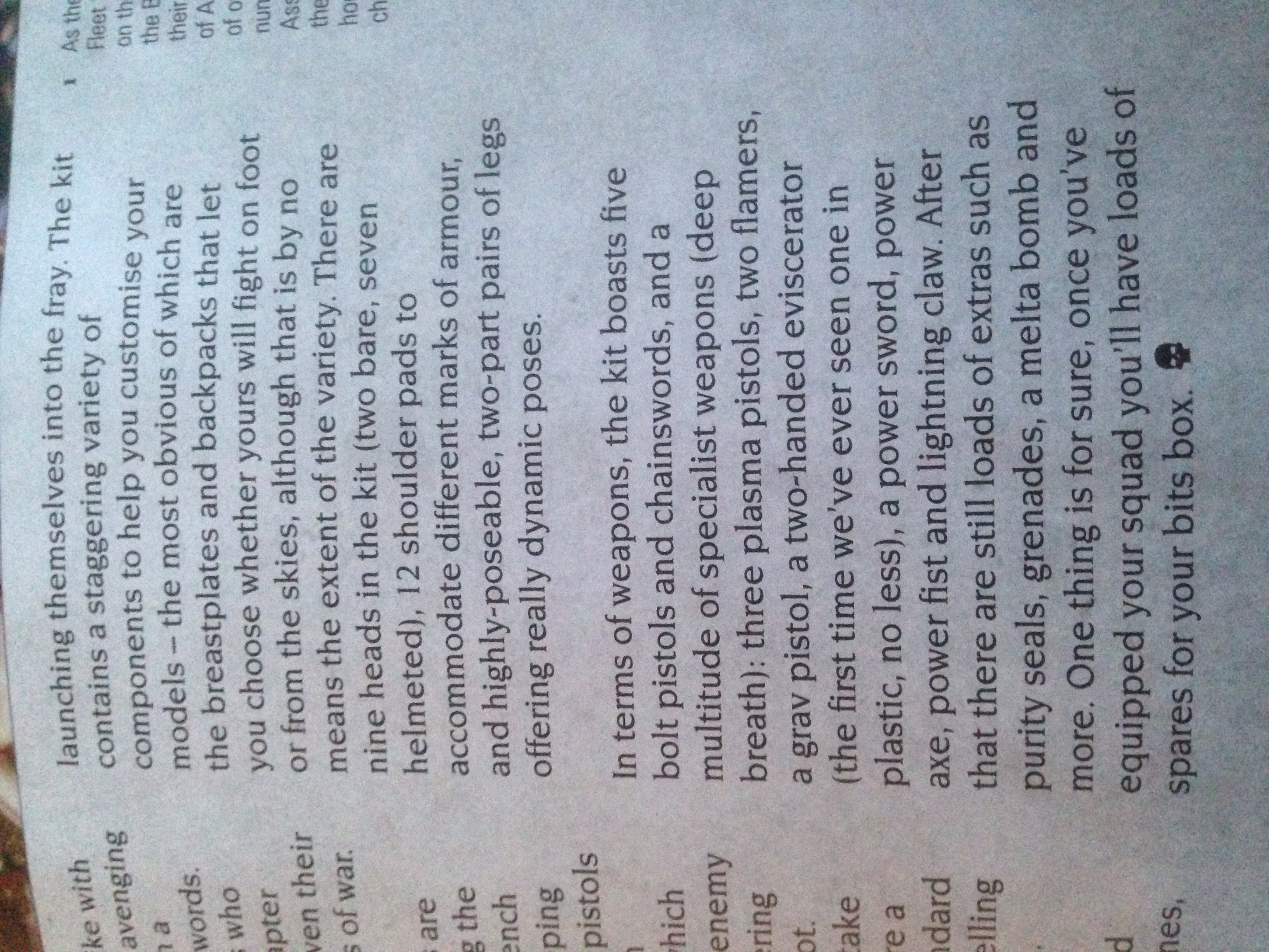 Watch, in spite of the buffs they are giving marines in terms of options, they will make the points costs prohibitive or the codex suck outright. Automatically Appended Next Post: Talys wrote:nudibranch wrote:Just to point out, the grav cannons look to have grav-amps mounted underneath them, which is nice...