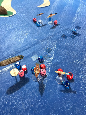 Got in a game of Warcaster last week, and our first test of Black Seas this weekend. At least until the kids came back from ogling sheep and became a threat to our borrowed ships.
