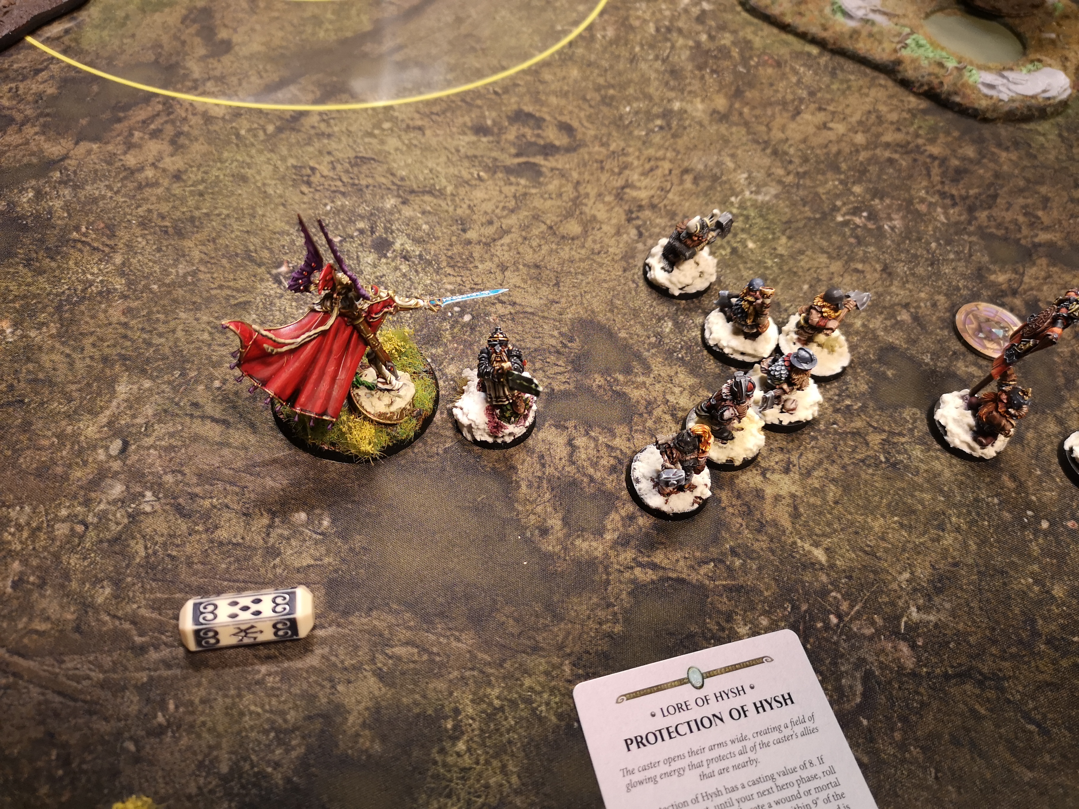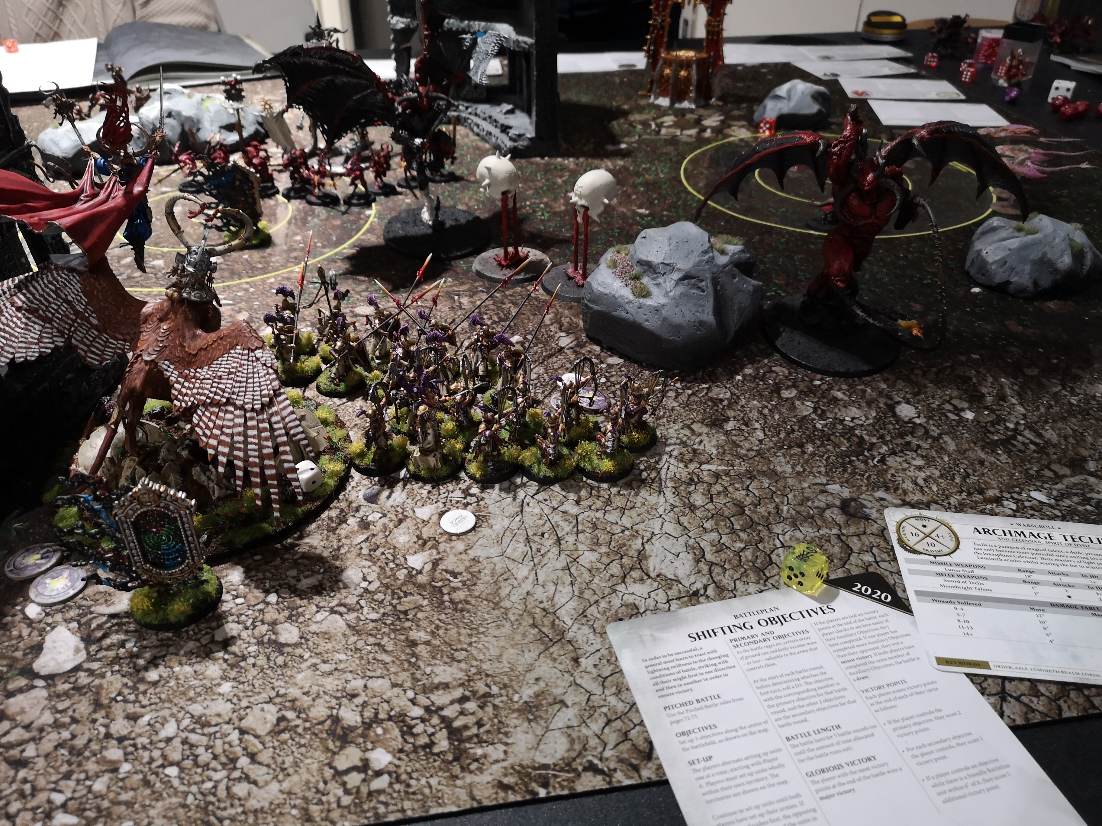 First game went okay casualty wise(took out teclis giving just 1 turn for him and wardens were dealt okay) but places of arcane power sucked for me. Loreseeker locked one objective, wardens put in wall for a while for 1 and he sniped my heroes fast. Loreseeker with -1 to hit and 2+ save before aetherquarts was also invulnerable.