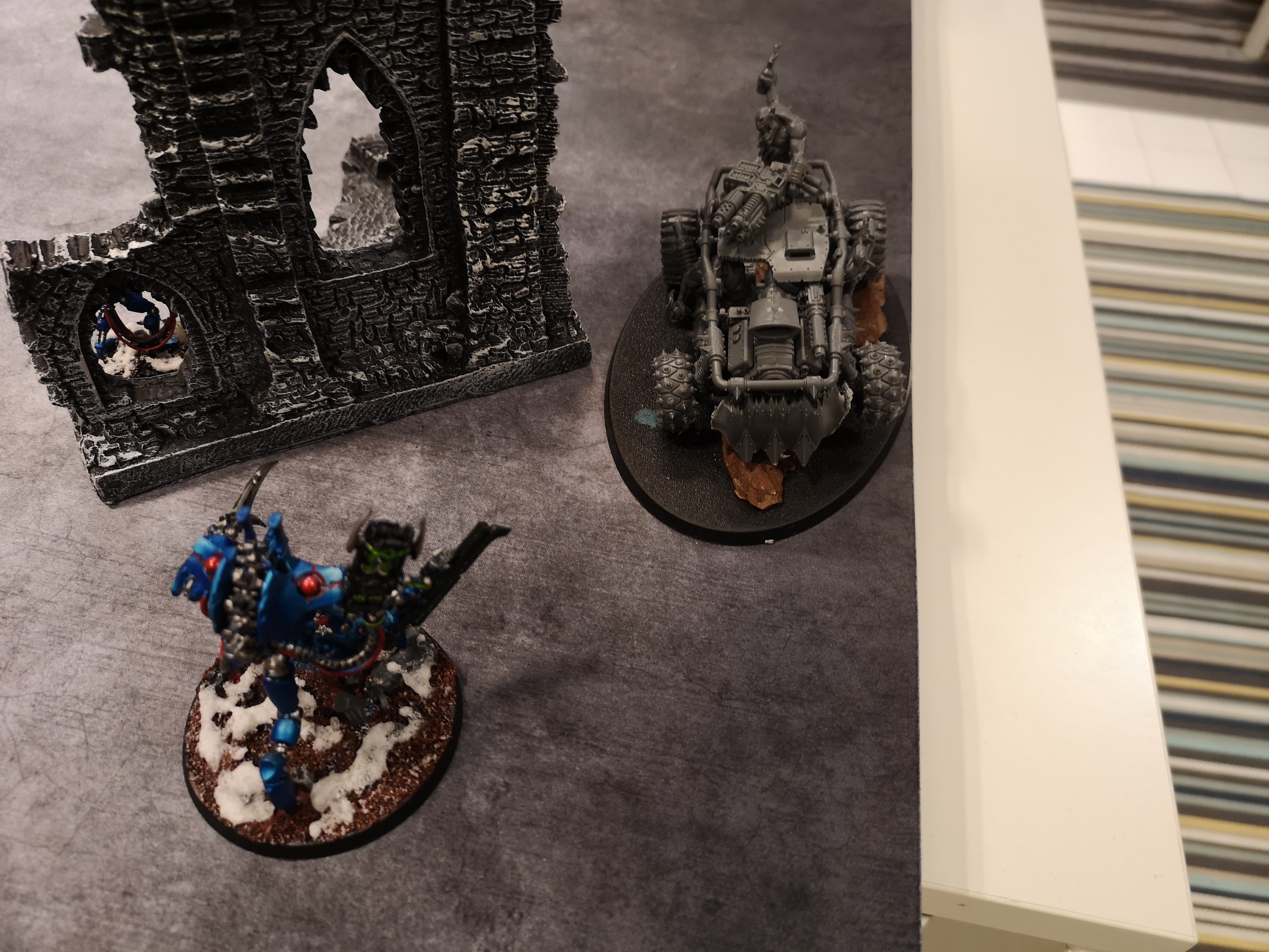 Ran a few remote games of Space Hulk for friends with inspiring picture material provided from the table setup.