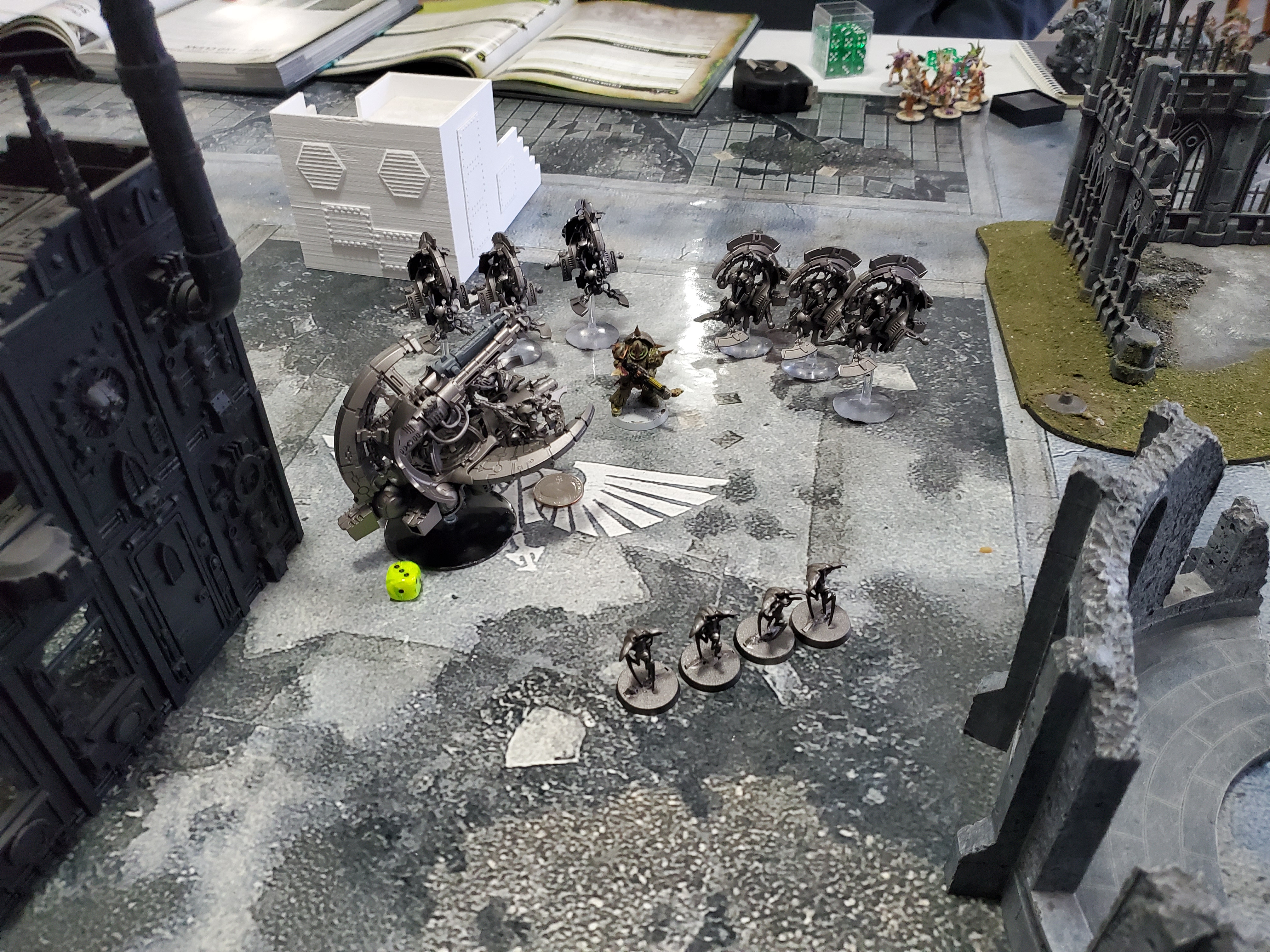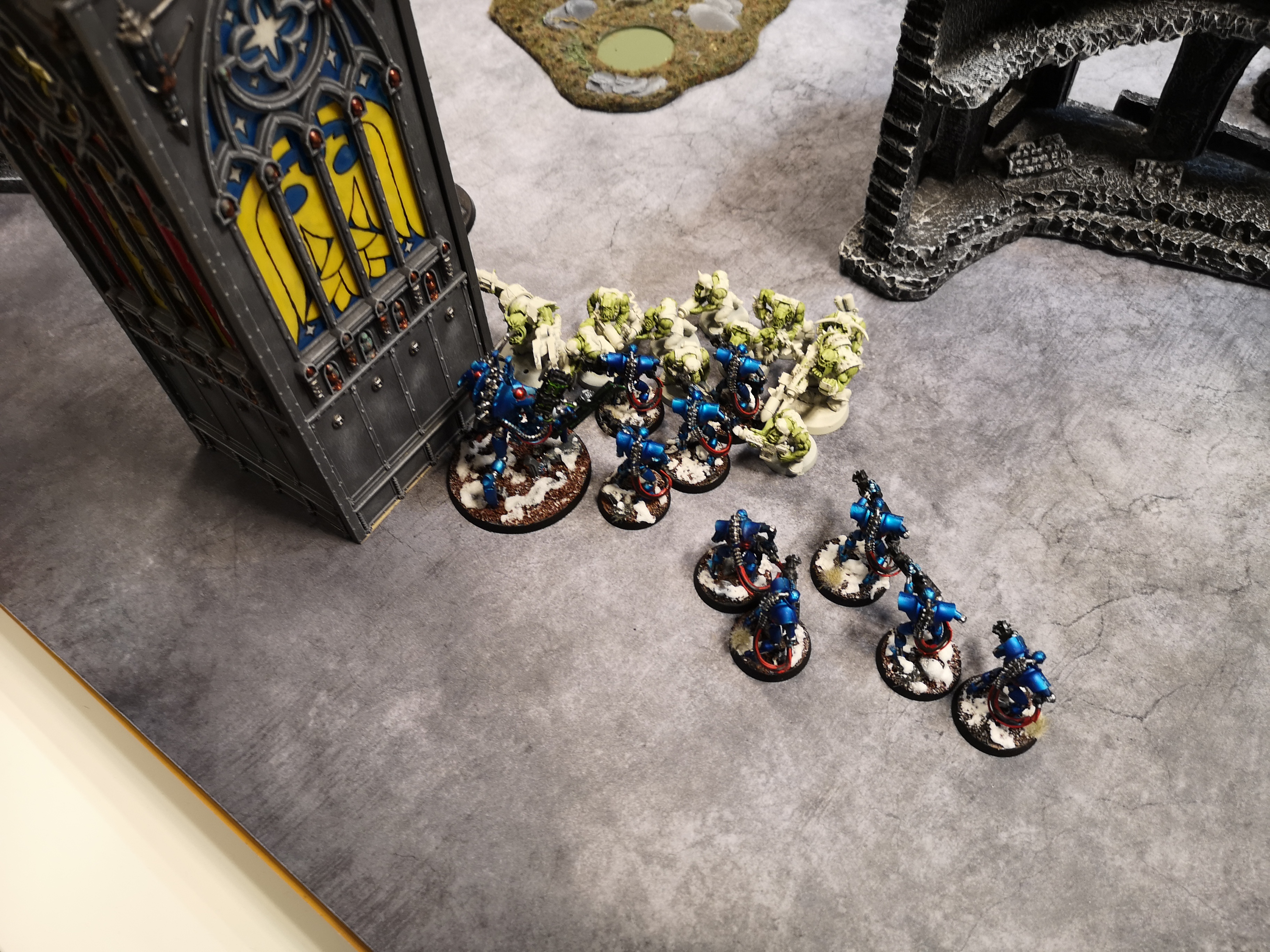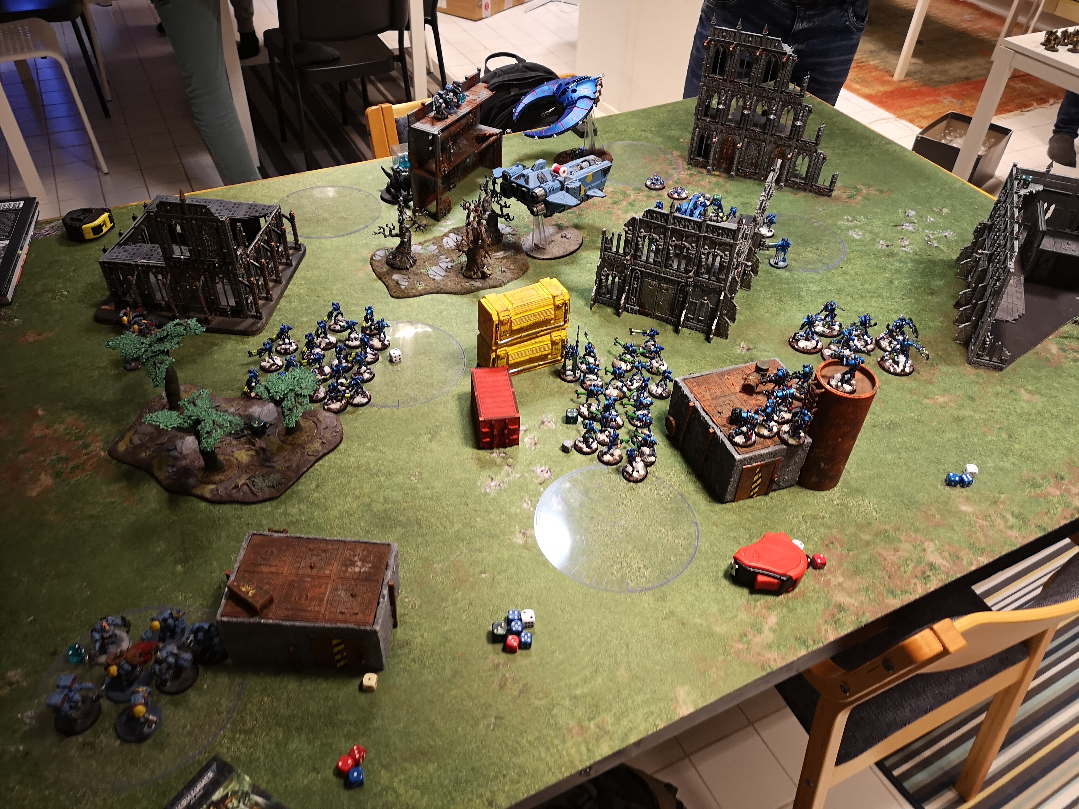 Thanks, the store has invested in a couple of 3D printers so the terrain variety has vastly expanded. Admittedly it was very bare, I think we're all still getting used to 9th Edition terrain, having a table full of pieces each with different rules and effects may have been a bit much at the time.