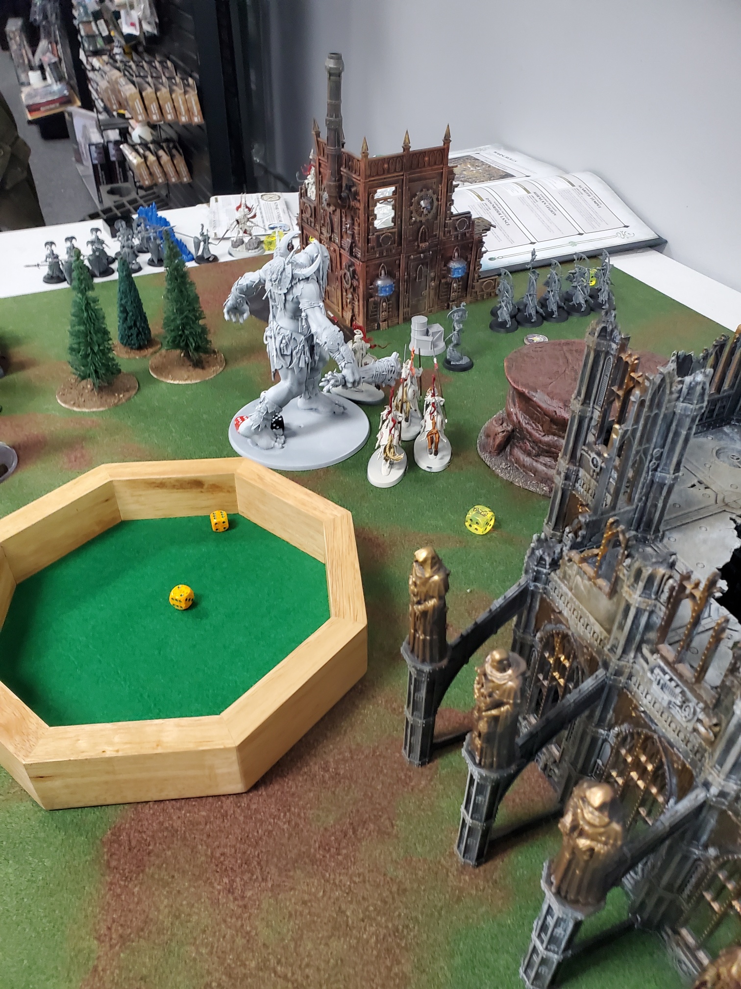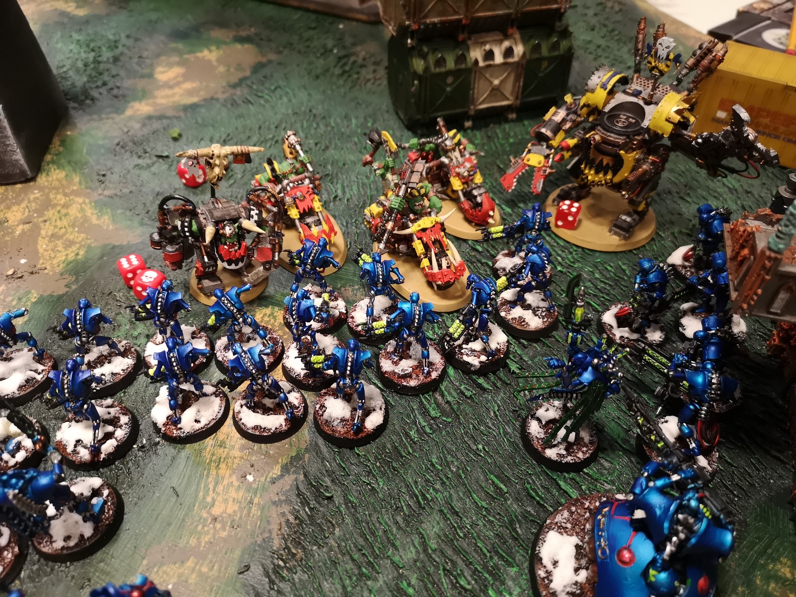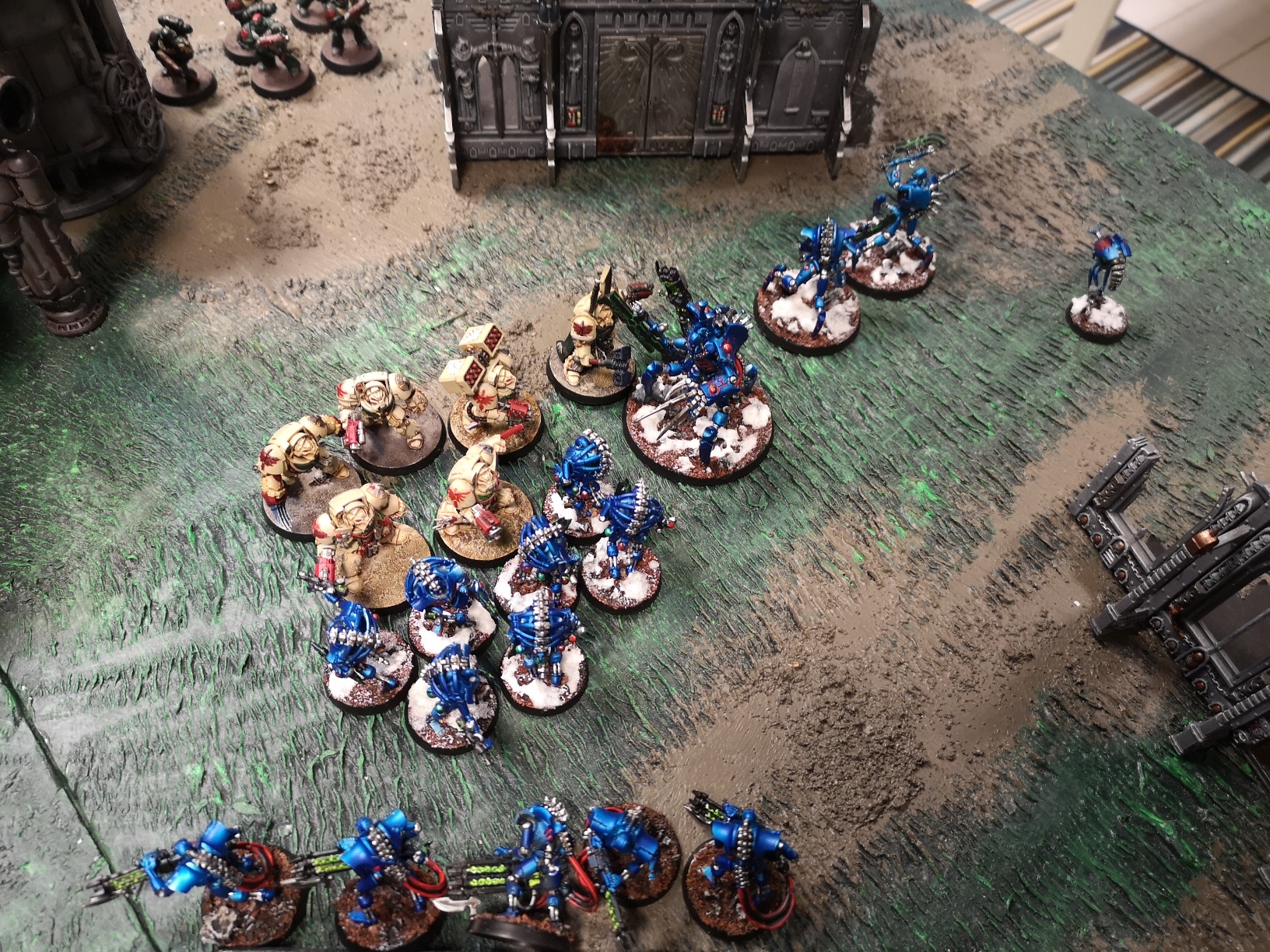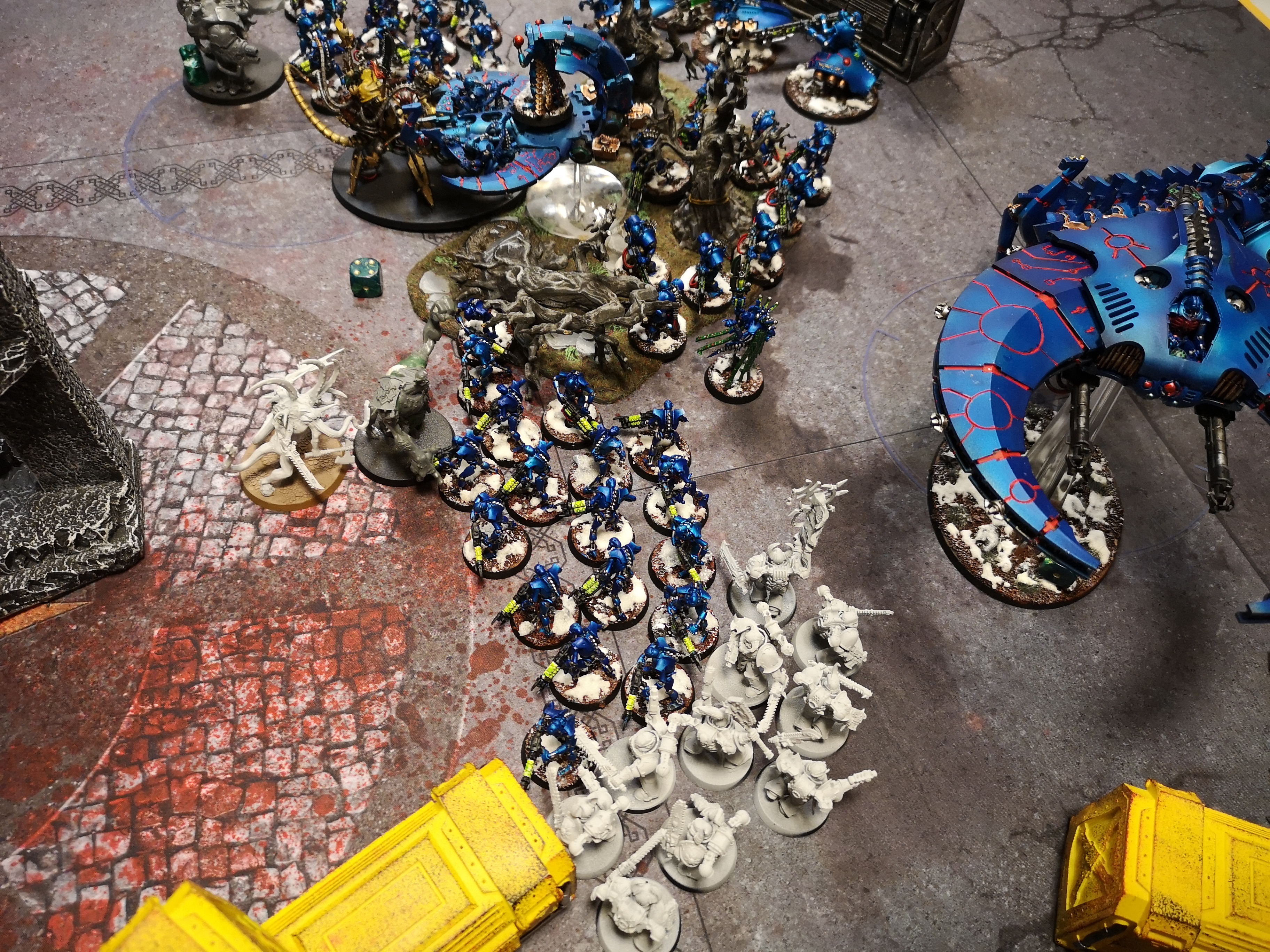 Thanks, the store has invested in a couple of 3D printers so the terrain variety has vastly expanded. Admittedly it was very bare, I think we're all still getting used to 9th Edition terrain, having a table full of pieces each with different rules and effects may have been a bit much at the time.