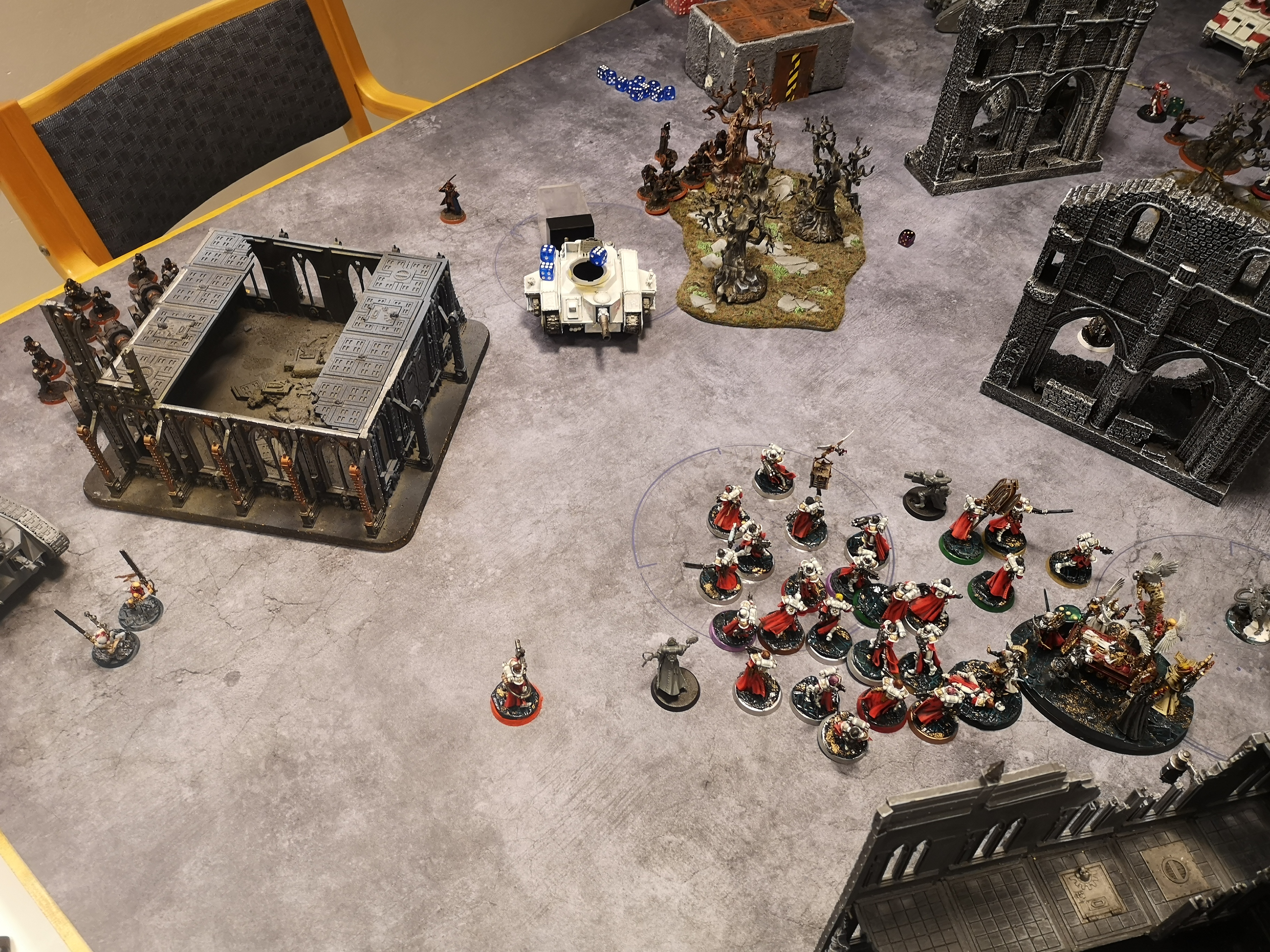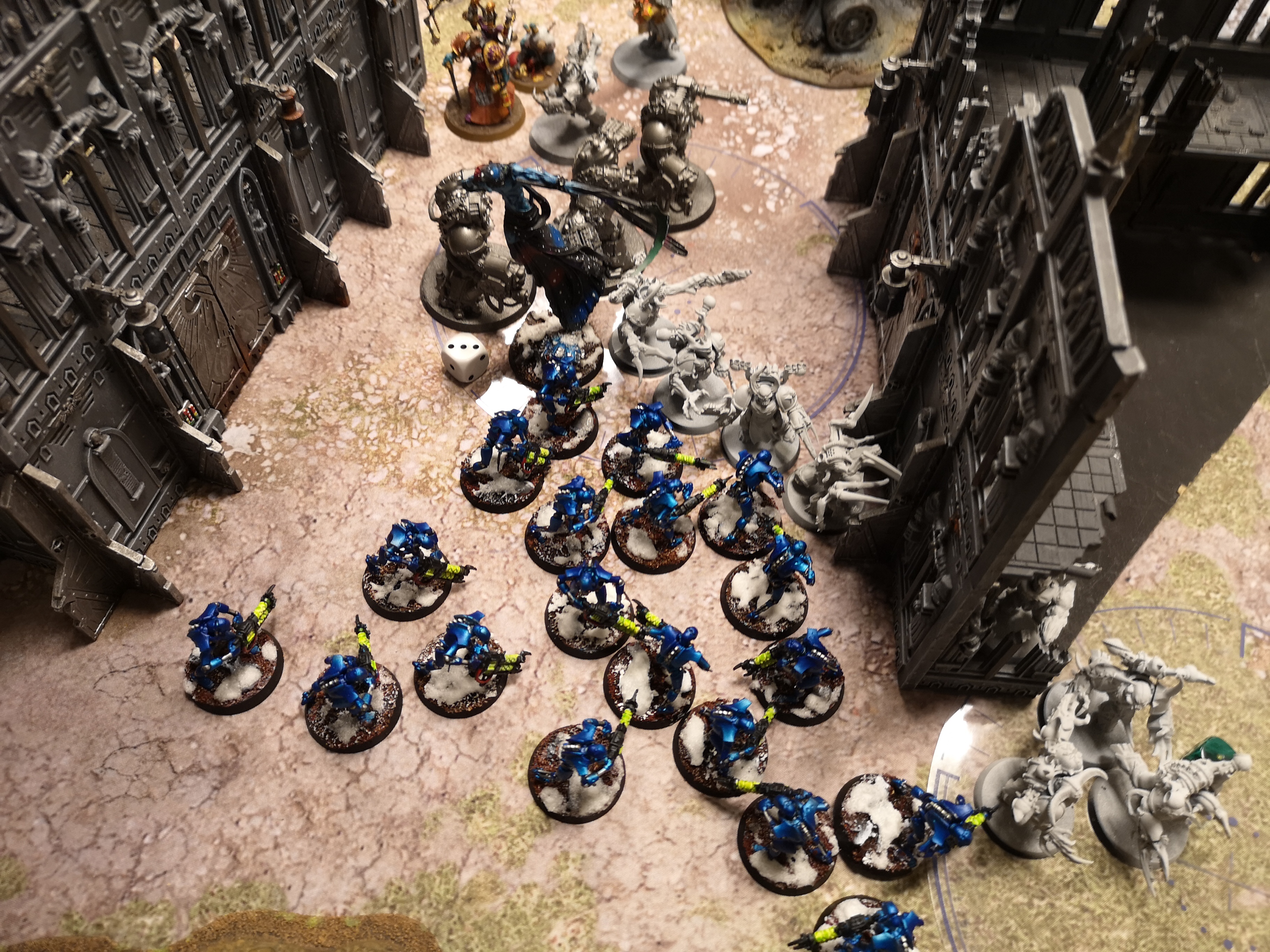 Bit lucky on last teleport. Not sure why he shifted position. Gave triumph and canoness easier charge and inferno pistol target to shoot. Did get away from repentia but they were gunning for axe and shield wraithguard anyway.