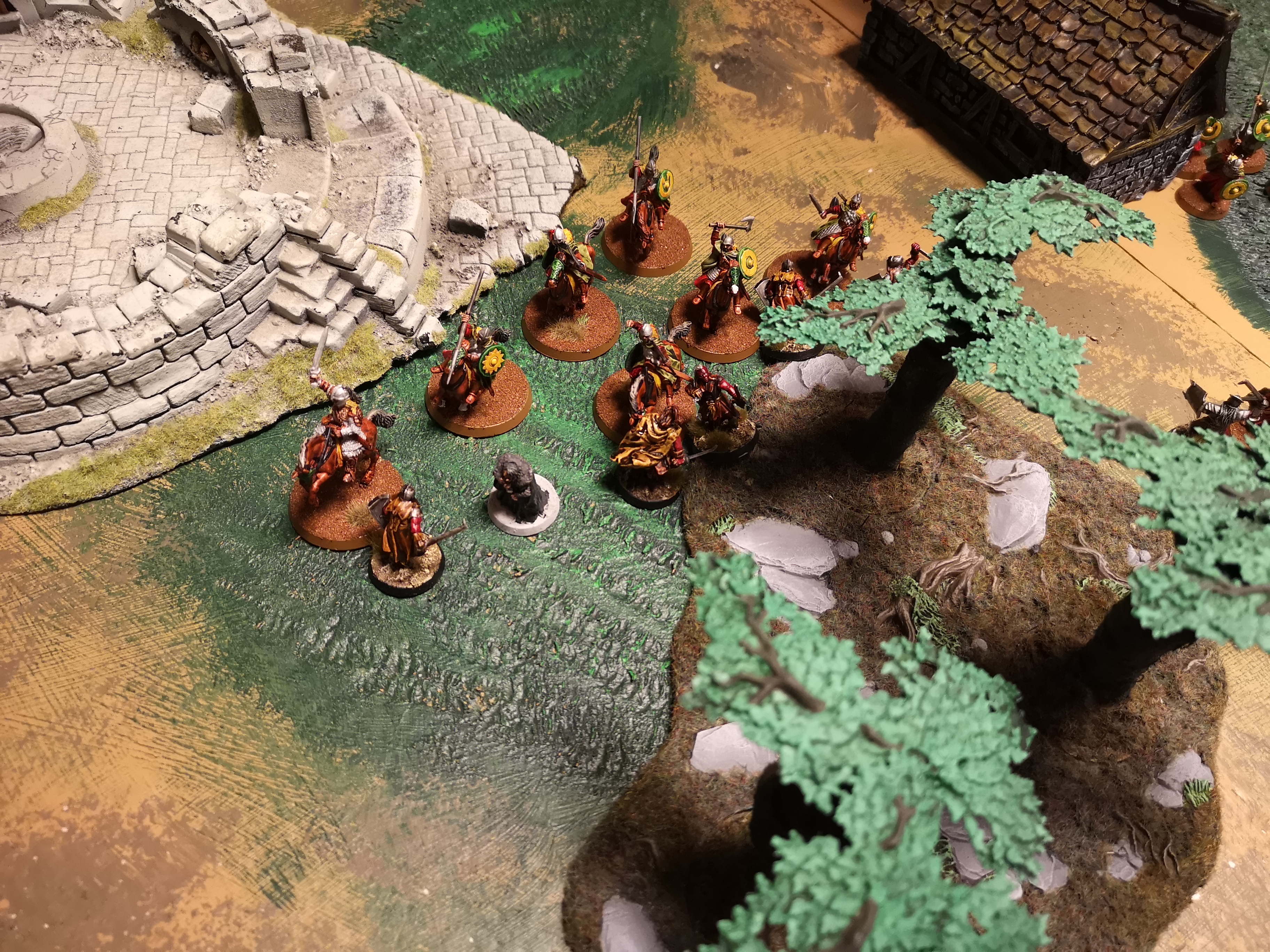 Rohan vs moria. I got so slaughtered. First charge was disaster with lost duel everywhere and 2 dead rohan. Eomer had to spend last might to pull tactical retreat. After regroup and reinforcements did second charge that was about as succesfull as 2nd. With that momentum was too far for moria and with eomer dead fast loss.