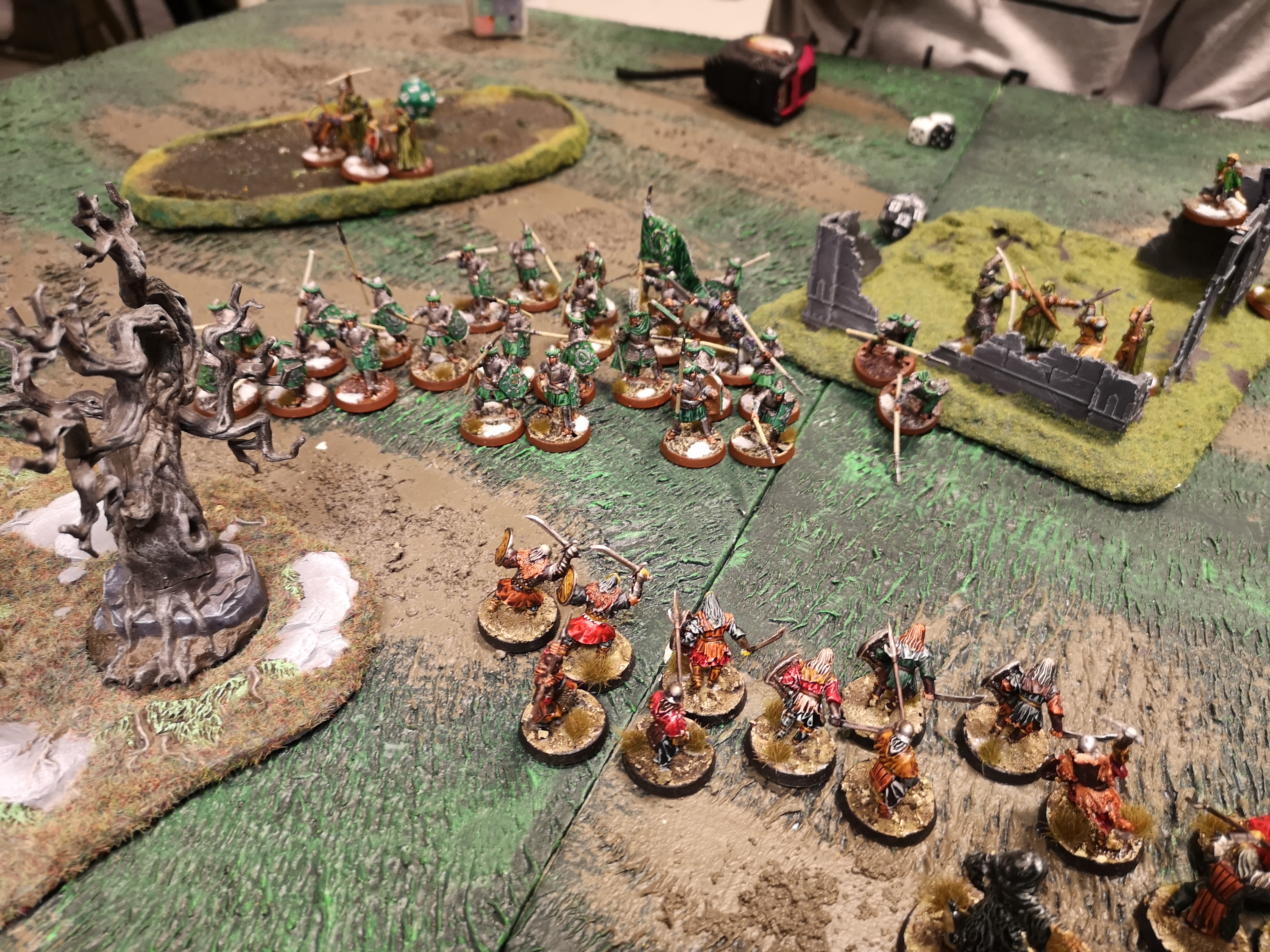 Demo game of lotr. 250 pts destroy supplies(to ensure game isn't just 2 groups clashing in middle). I crushed the new player despite trying to give him advantage but dice were not being kind to him. If he rolls 1's and 2's and i roll 5's and 6's not much he can do.