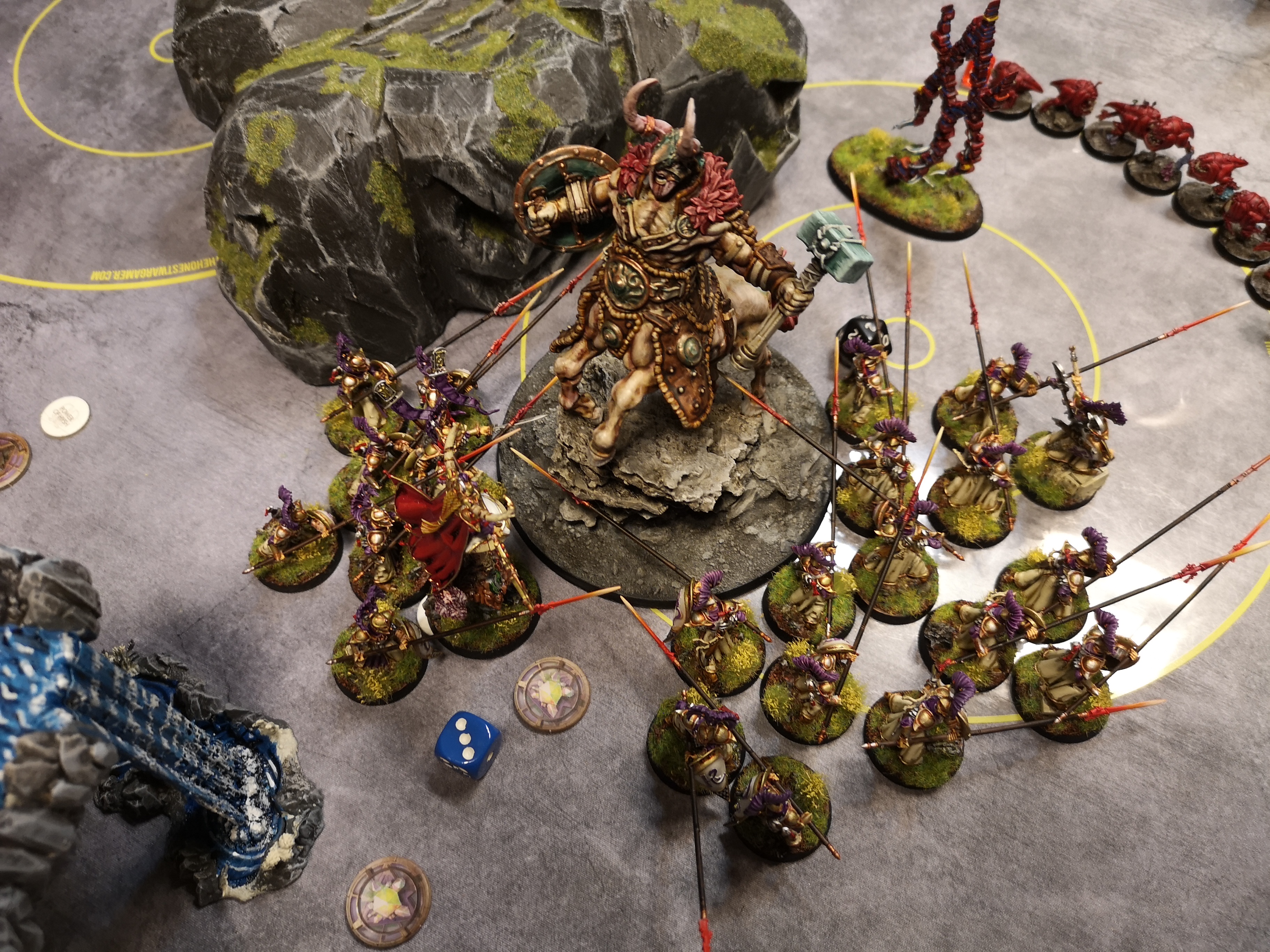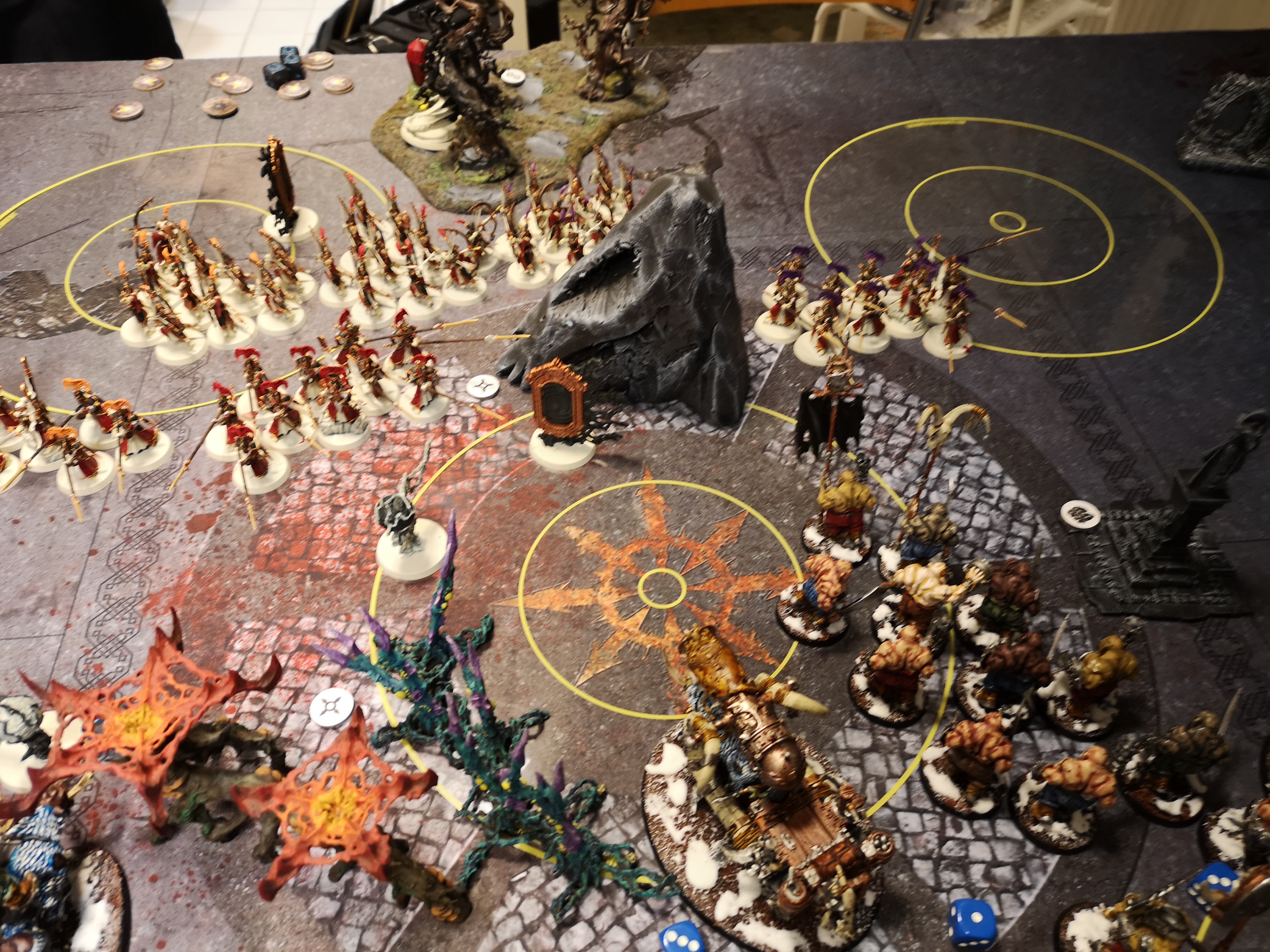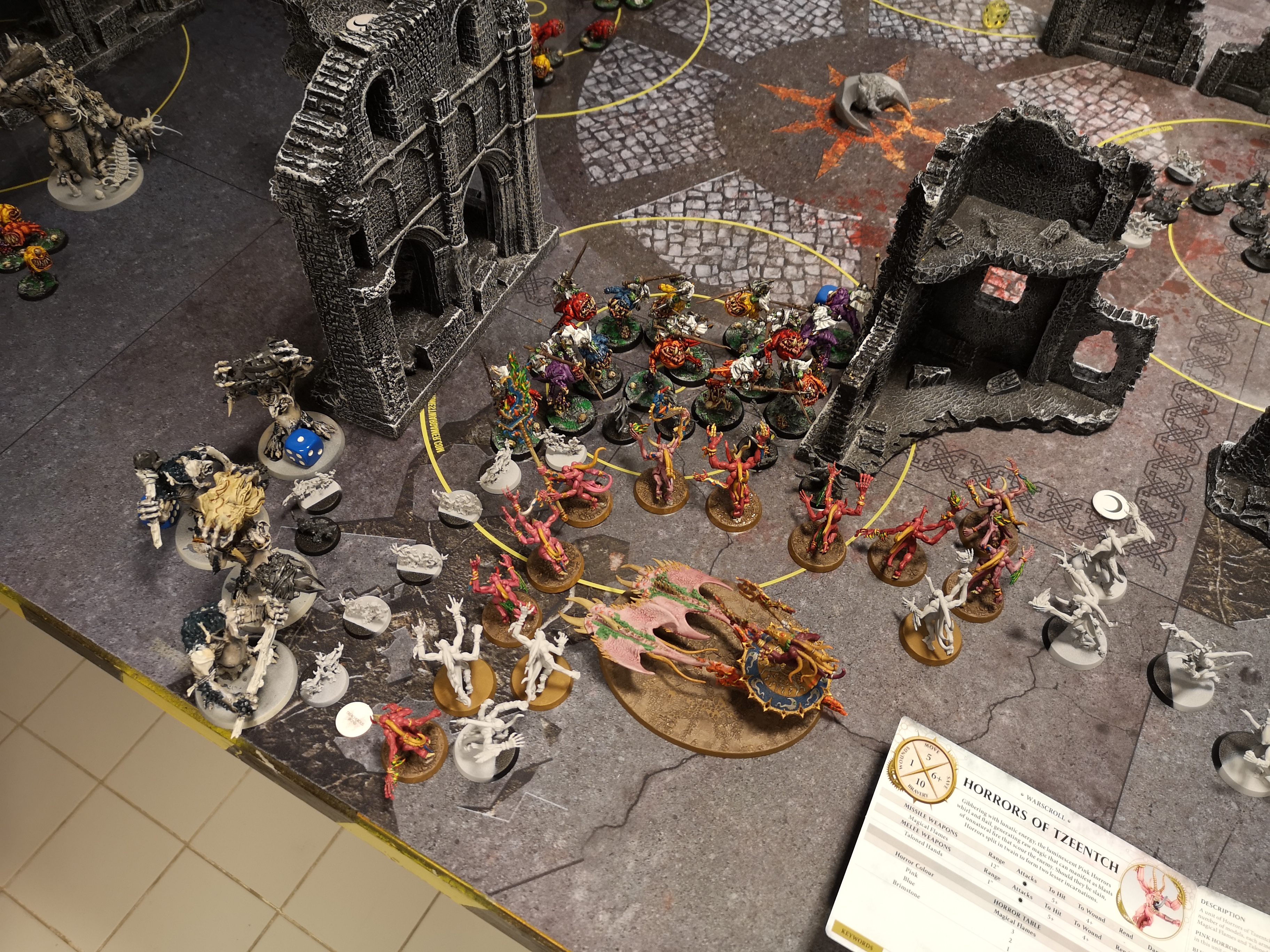 2 vs 2 game with my lumineth allying with tzeentch against nurgle and khorne alliance. Tzeentch specifically wanted me to bring teclis. We sure owned magic phase though my 2nd turn was mild due to khorne trickery.
