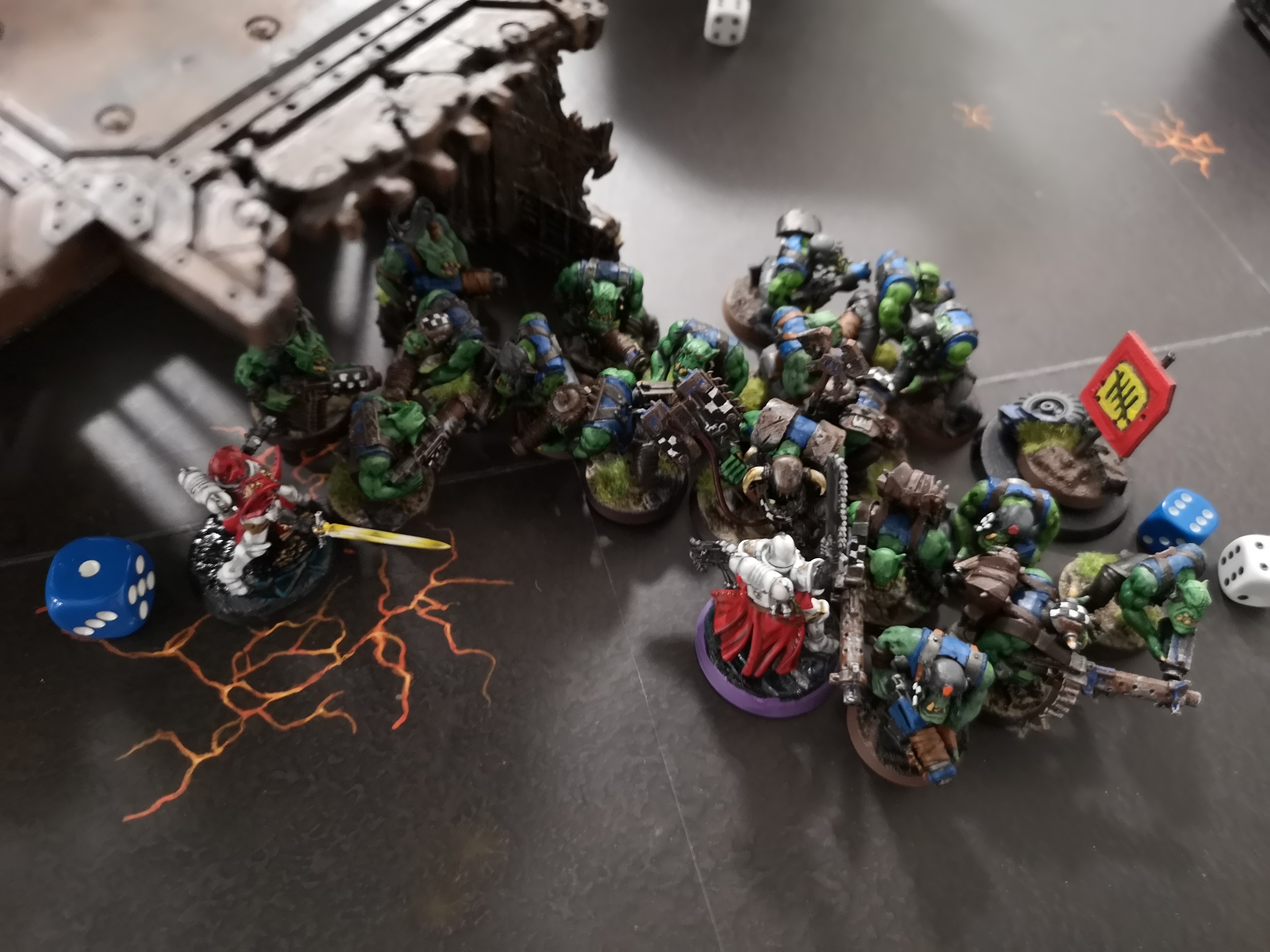 Game 2 behind enemy lines. Much the same though his warlord dented my skorpek lord. Might have been end of him but praetorians(now full 10) shot buggy with pistols taking last 2wounds giving praetorians chance to charge and kill warboss before he got to attack.