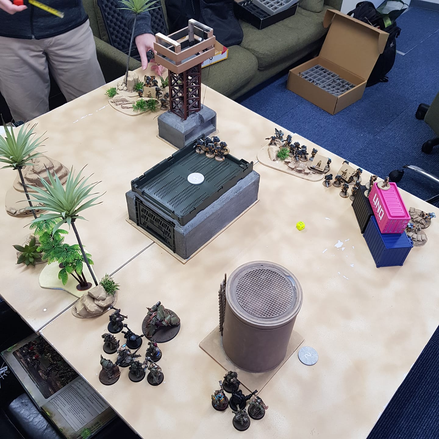 The next match was against an iron warriors player with a single center objective that could be moved 6" a turn.
