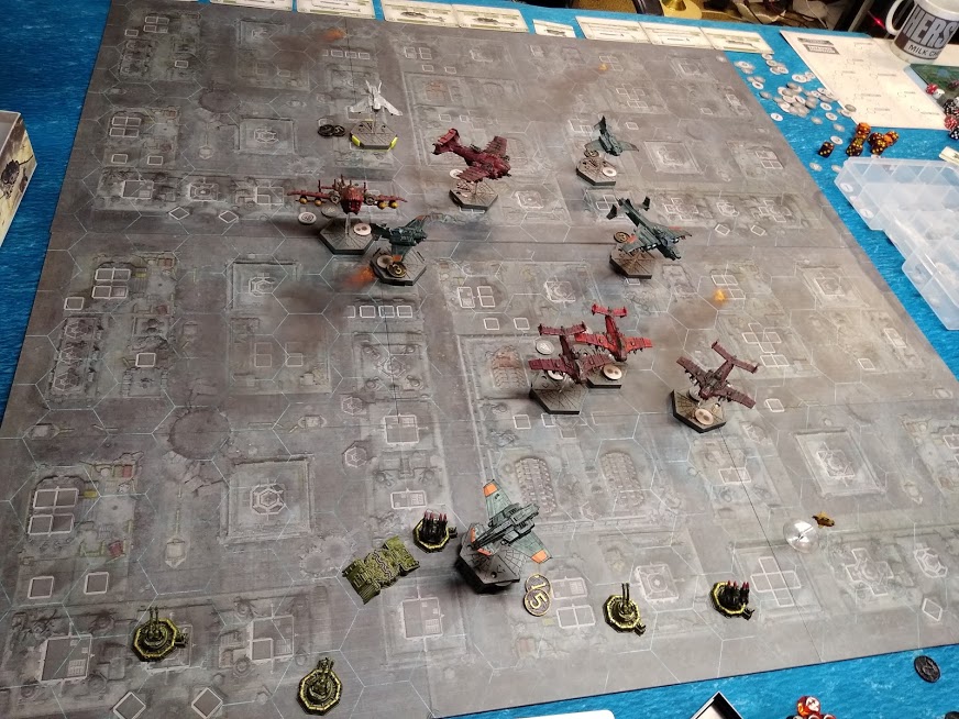 T'au deployed in the middle, and had to survive three turns of SW attacks. Victory to the army with the most models in the center at the end of the last turn.
