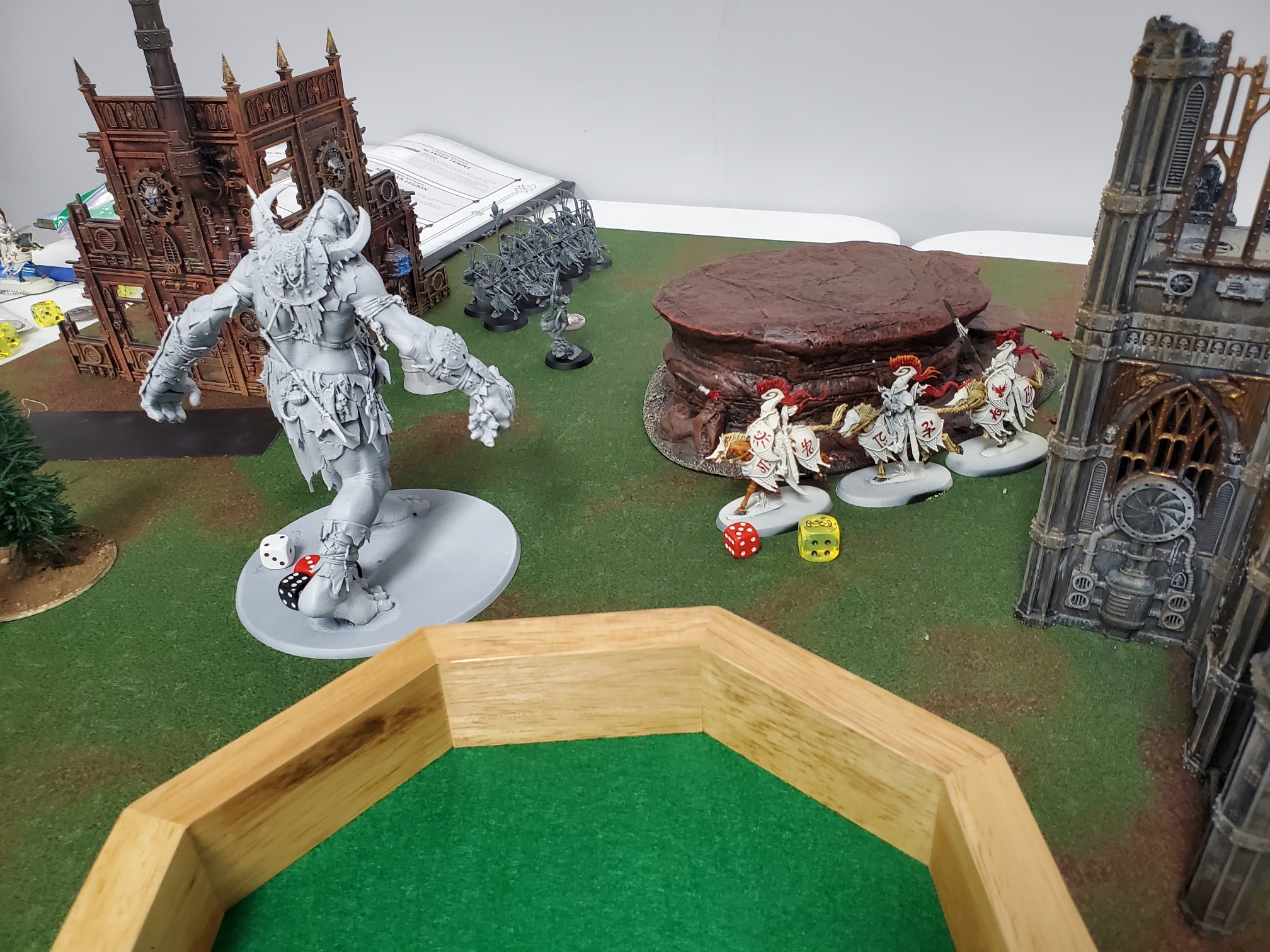 Had 2 games despite very low calorie diet(max 800kcal a day). Opponent had planned to bring khorne so had made lists more casual(particularly stormcast). Then for good reason he had to bring lumineth so was caught flat footed. And due to diet didn't want to pack these and unpack new army...