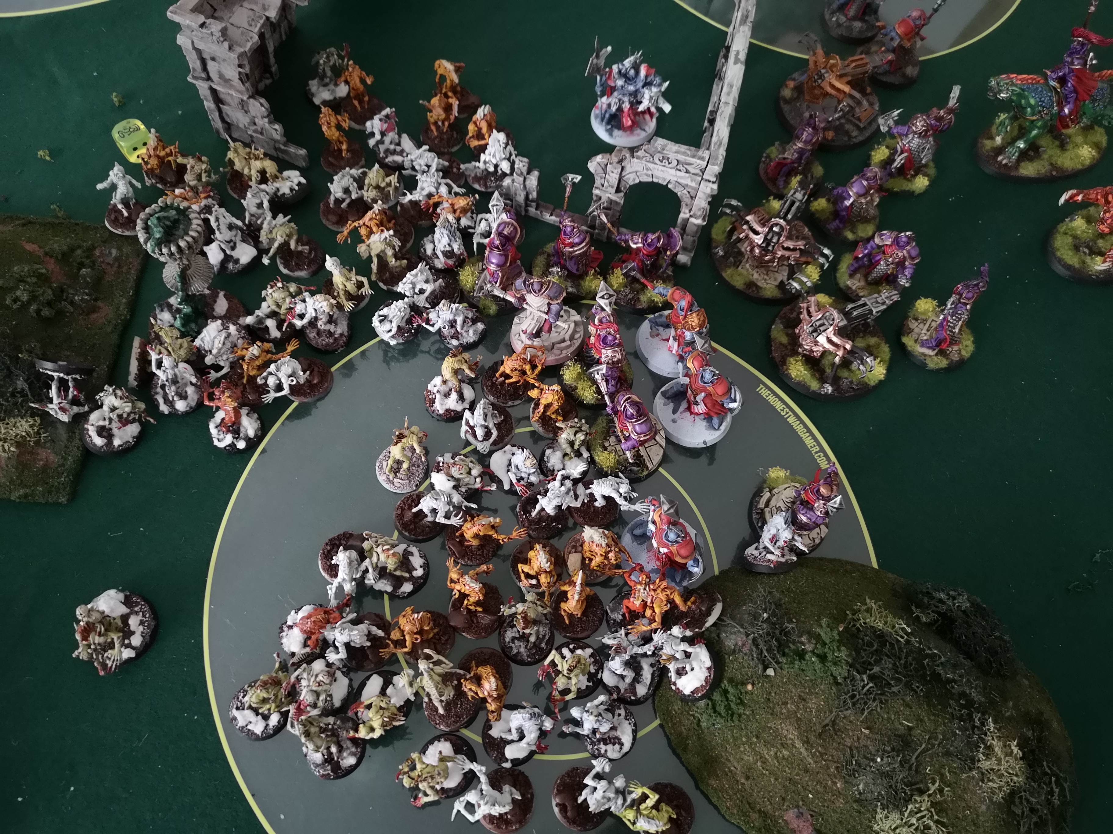 Greenskinz kept getting lucky breaks and the only thing that kept the Ogors in was the fact the Butcher kept getting his spells off and healing himself.