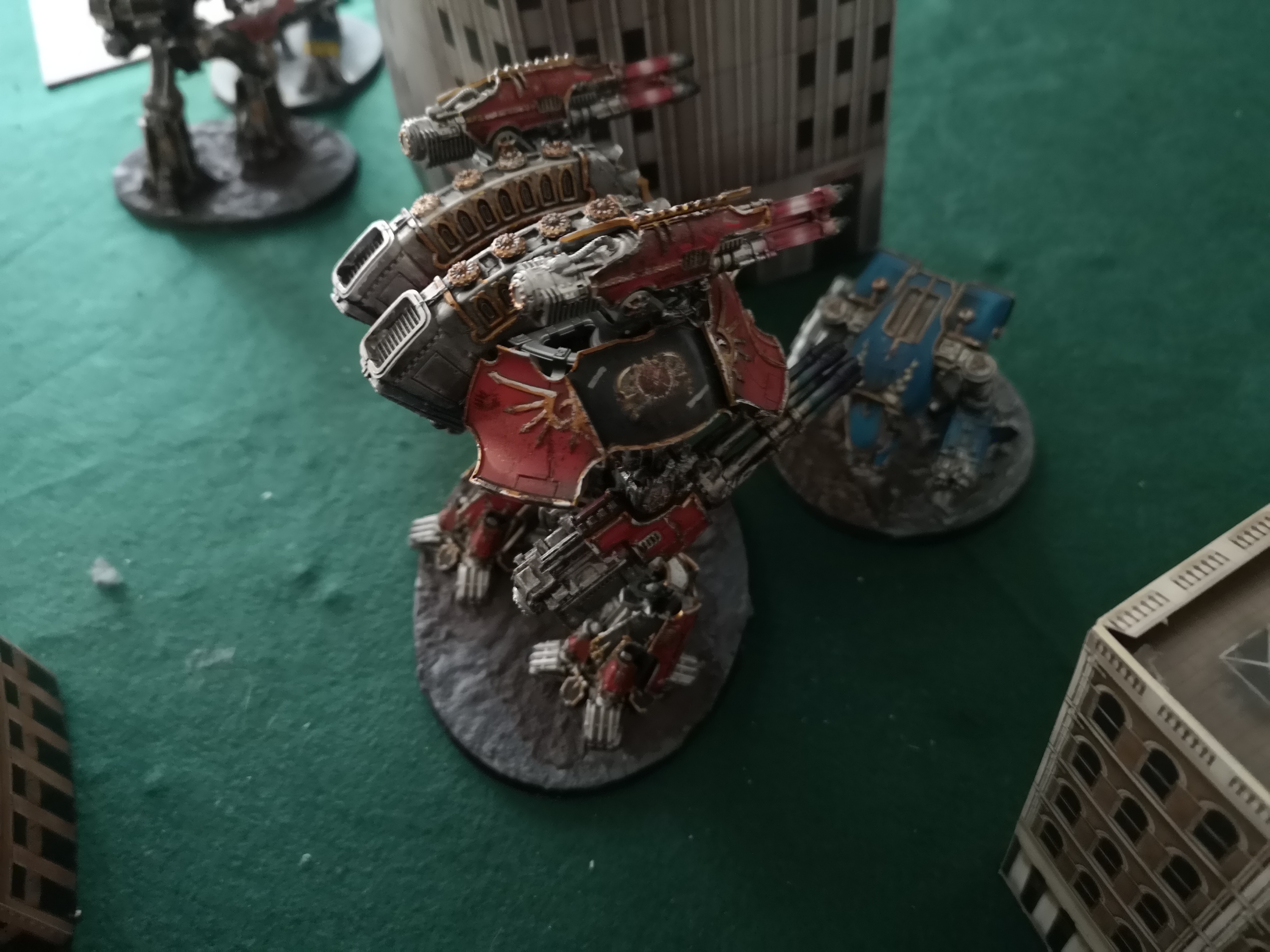 Played some Epic Armageddon with my motorized XIV supported by a Reaver against an infantry Krieg force. A grueling match that was looking like a tie until the fourth turn, when the guardsmen charging the middle factory suffered an unexpected loss as they assaulted into the titan's support range and got blasted off the walls before a fatal charge of the Krieg commander out of the woods got broken against Captain-Commander Erasmus' tactical detachment, turning the game into an Astartes win on kill points after neither side could achieve a decisive win on objectives.