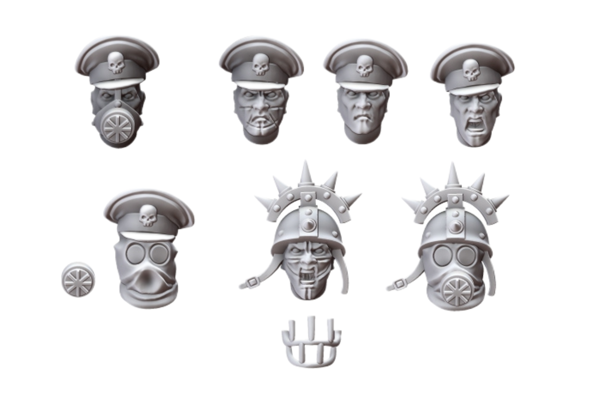 Not a huge fan of the above heads... Though I do kind of like the bald gas mask, almost Riddick head... I will probably use regular trooper or female trooper heads... but likely will skip the demon mask heads. May use some spare Eisenkern heads...