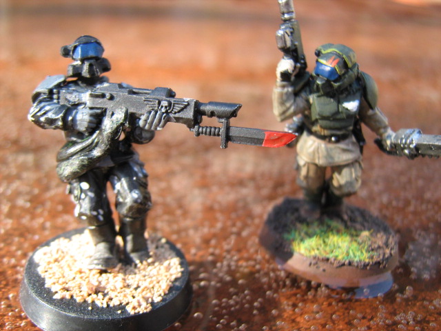 I also made a convertion using gas masks and cadian clip on figures but the gas mask head is a little bit rounder.