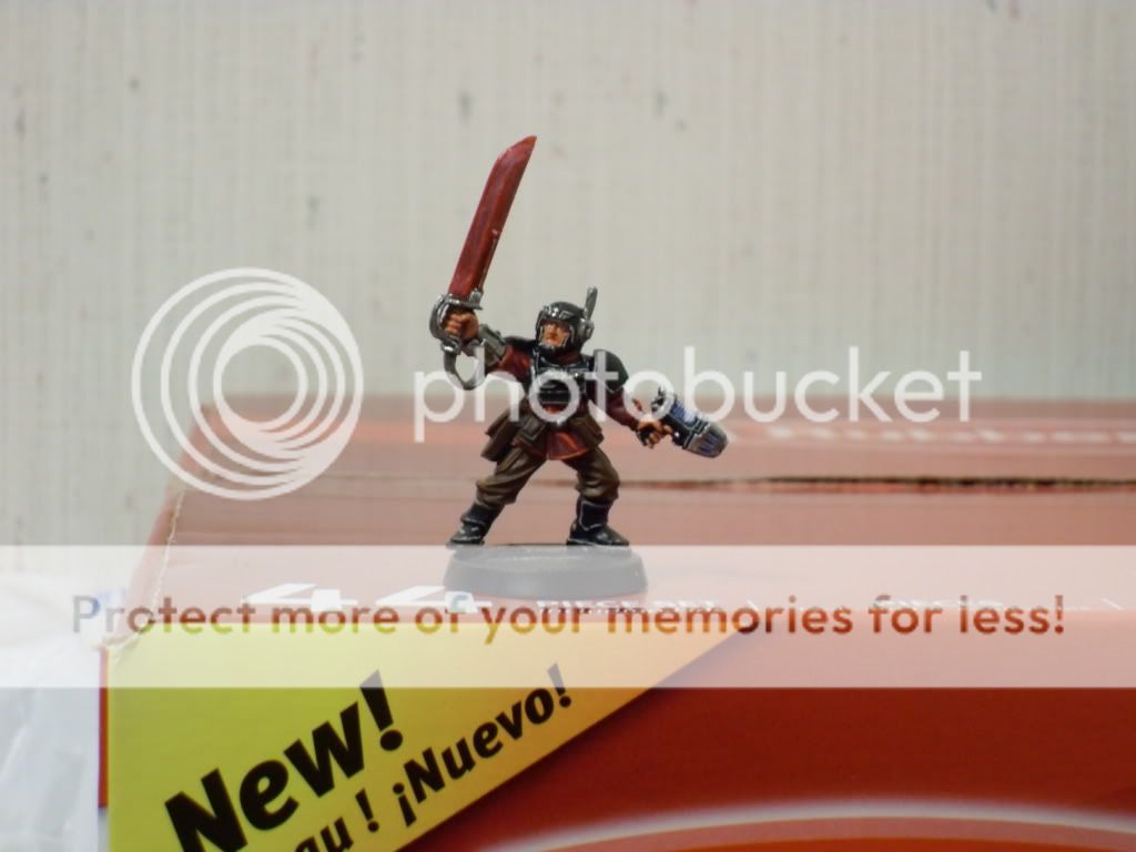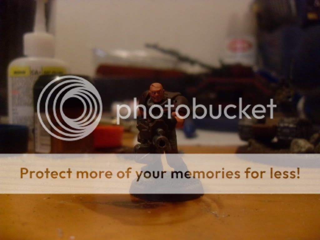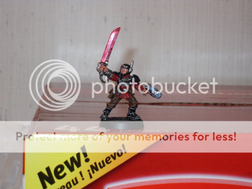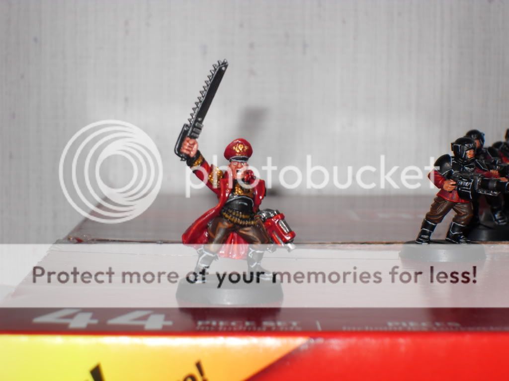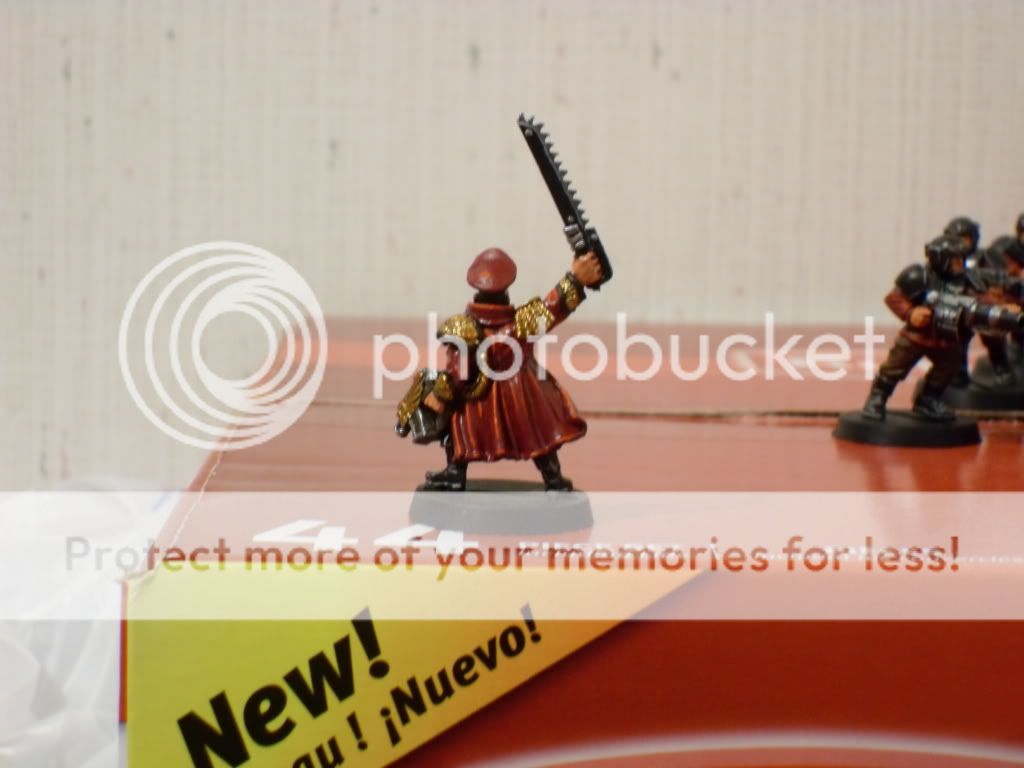 After working for a few hours on the weapon teams I decided to get a start on a commisar and what started out as a small break from working on "normal joes" turned into a 3 hr painting session focused on one model  Anyways, here's the result: