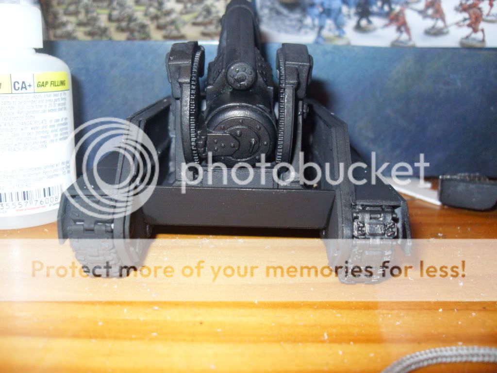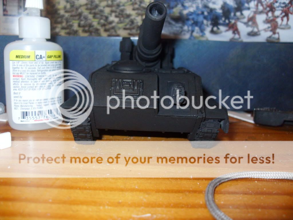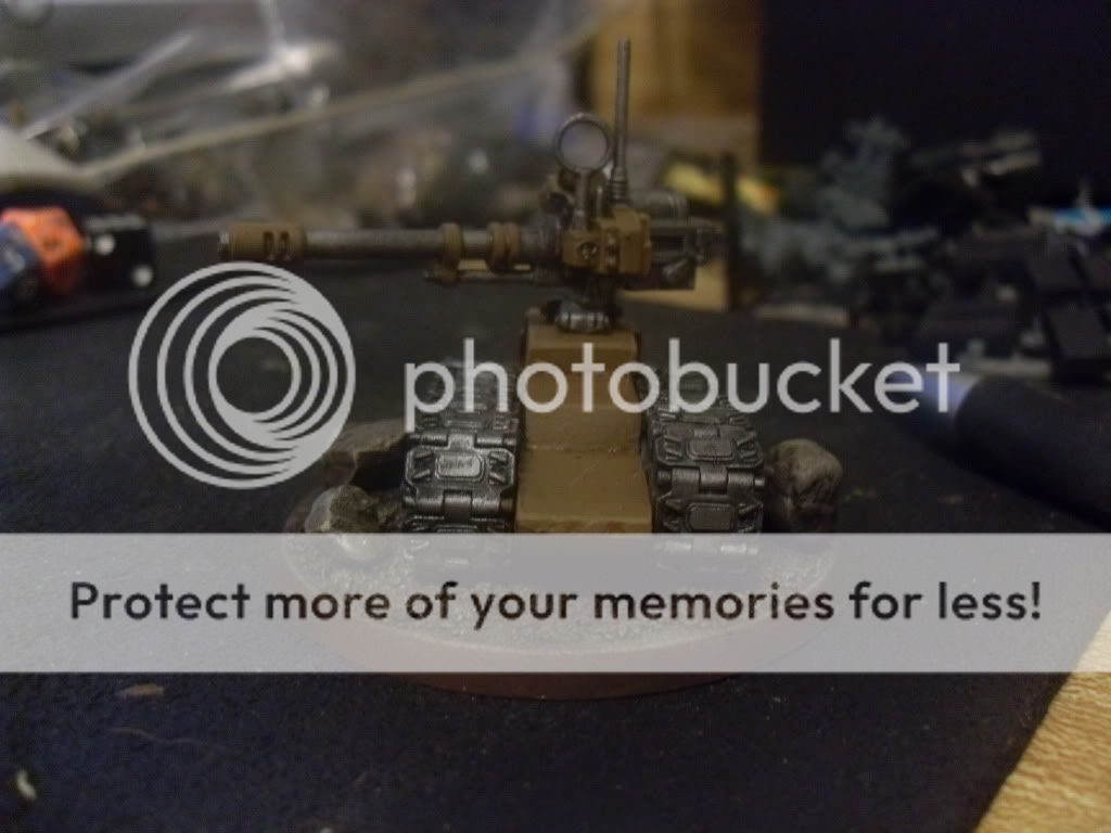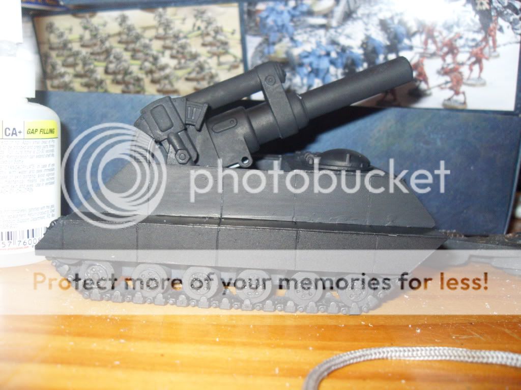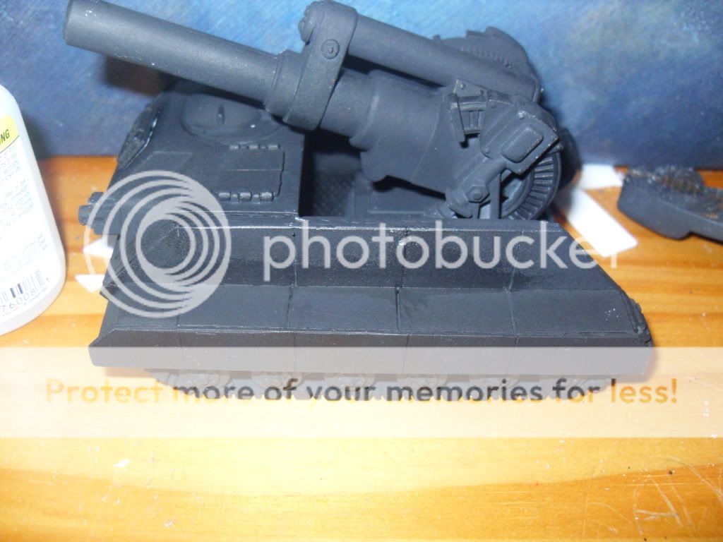 While not really finished in any way shape or form. I thought I would show that I'm done stagnating with my pal's IG by showing the Leman Russ Vanquisher I converted out of a salvaged Russ chassis and a Basilisk barrel: