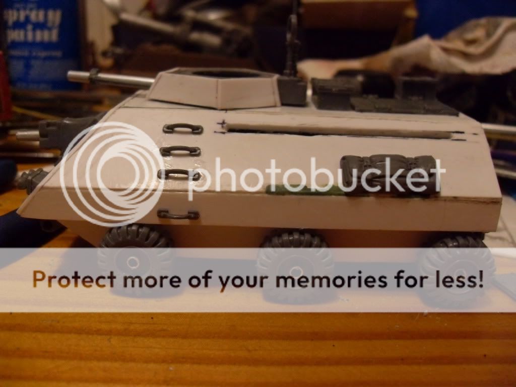 Thanks for the positive input. I'm not really very fond of the APC myself. I feel as if I need to make some sort of change to the front and profile of it, but I can't think of any easy changes... I may scrap it and turn it into a trukk for my orks, I don't know..