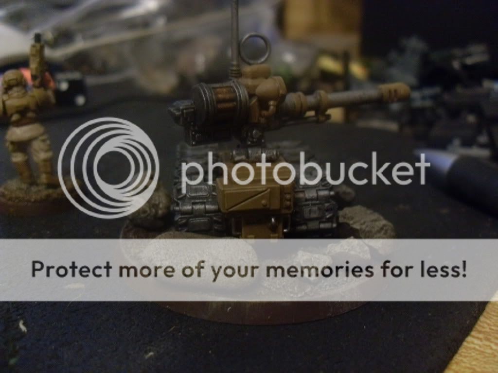 Well, my painting log has definitely fallen to the wayside for the time being since my pal got his IG for the Ard Boyz tourney and hasn't had a chance to give them back for me to get anymore painting done. BUT, I do have a brief update here. It's a conversion based on the left overs from a Basilisk I hacked up to convert his Vanquisher for him. I've spent the past month puzzling over what the hell I was going to do with it, so I decided to use it to experiment with plasticard work. I have to say, for my first attempts with the stuff, the results are pretty good.