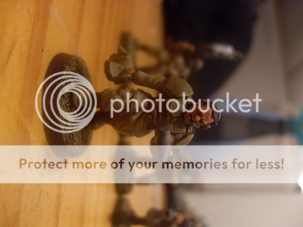 Welp, the paint must help because I caught a thorough trouncing at the hands of these guys and the rest of their army (who're still barely assembled, much less painted). The game ended with me only having 2 baal predators (which we used despite my use of the new space marine codex.. the dakka dakka is too tempting), a banged up razorback with no weapon and one sole land speeder surviving out of my squadron of 3. It was a good game though.. Ifalna wrote:Basing time! Actually, they're from a planet with dark, nutrient-rich, black potting soil... Not buying that one? Oh well. I'll get around to it eventually I tried dry brushing, it just didn't look right to me.. I'll prolly try again later highlighting it a different way.