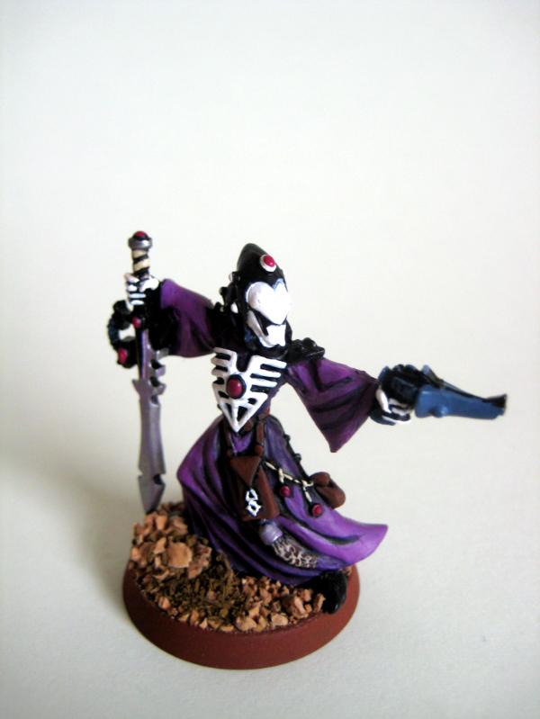 Dude - love it. There's been a resurgence in the Eldar lately, and I like that. Your paint is really nice, I like the style. The Solitaire Avatar is a nice idea - I saw a Deceiver Avatar a while back but didn't like it. I think perhaps the small head looks a little strange, but in this instance I think it works - besides, ther'es precious little you could do about it.
