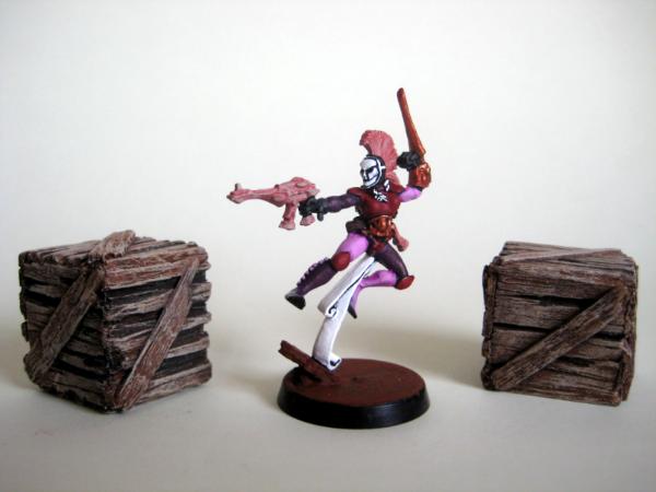 Yeah on some of the older models the paint is quite thick (this army was started ages ago before I went to university, and I'm only getting back to it now), on newer stuff like the Harlequins and warlock only the white is thick, intentionally. Close up (and these photos aren't great either) it can look a little tacky, but at table-top distance it makes them oh-so-bright&shiny and Eldar-ish, if you'll excuse the profusion of technical terms