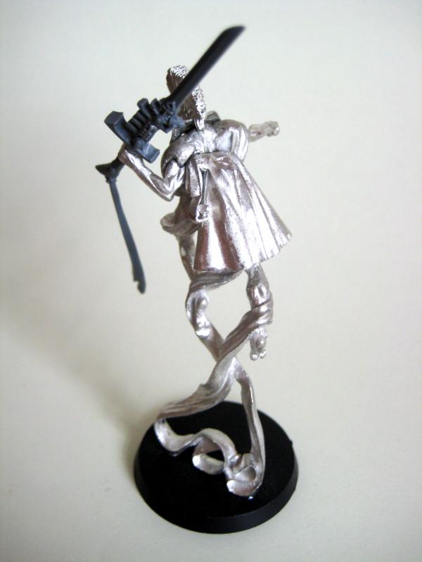Thank you! The sword is in three bits: the top part (the so-called 'pointy bit' ) is the Dire Avenger Exarch Diresword with the hilt cut off. Below this is part of the wraithlord sword, from the crosspiece up the blade about 1cm. Below the hand is the hilt from the WL sword. There's a little spacer between the fist and the larger crosspiece so it can align properly. I made such a complicated weapon partly because I like the double crosspiece look (a little like the two handed swords of German Landsknechte), also because the proper WL sword was too big, it looked silly.