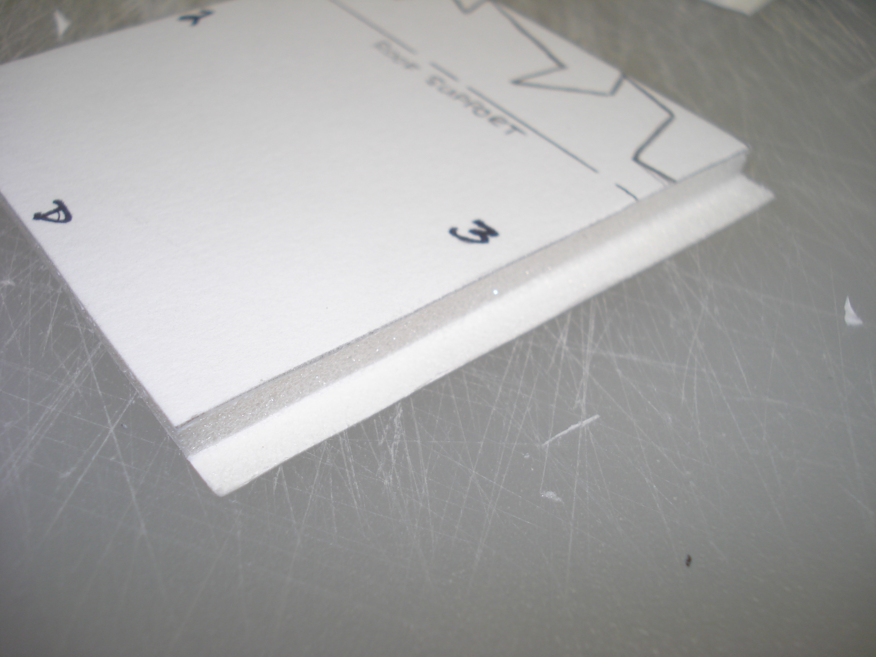 2) You will than cut into the foam along the paper, so that you have an edge that looks like the ones below.