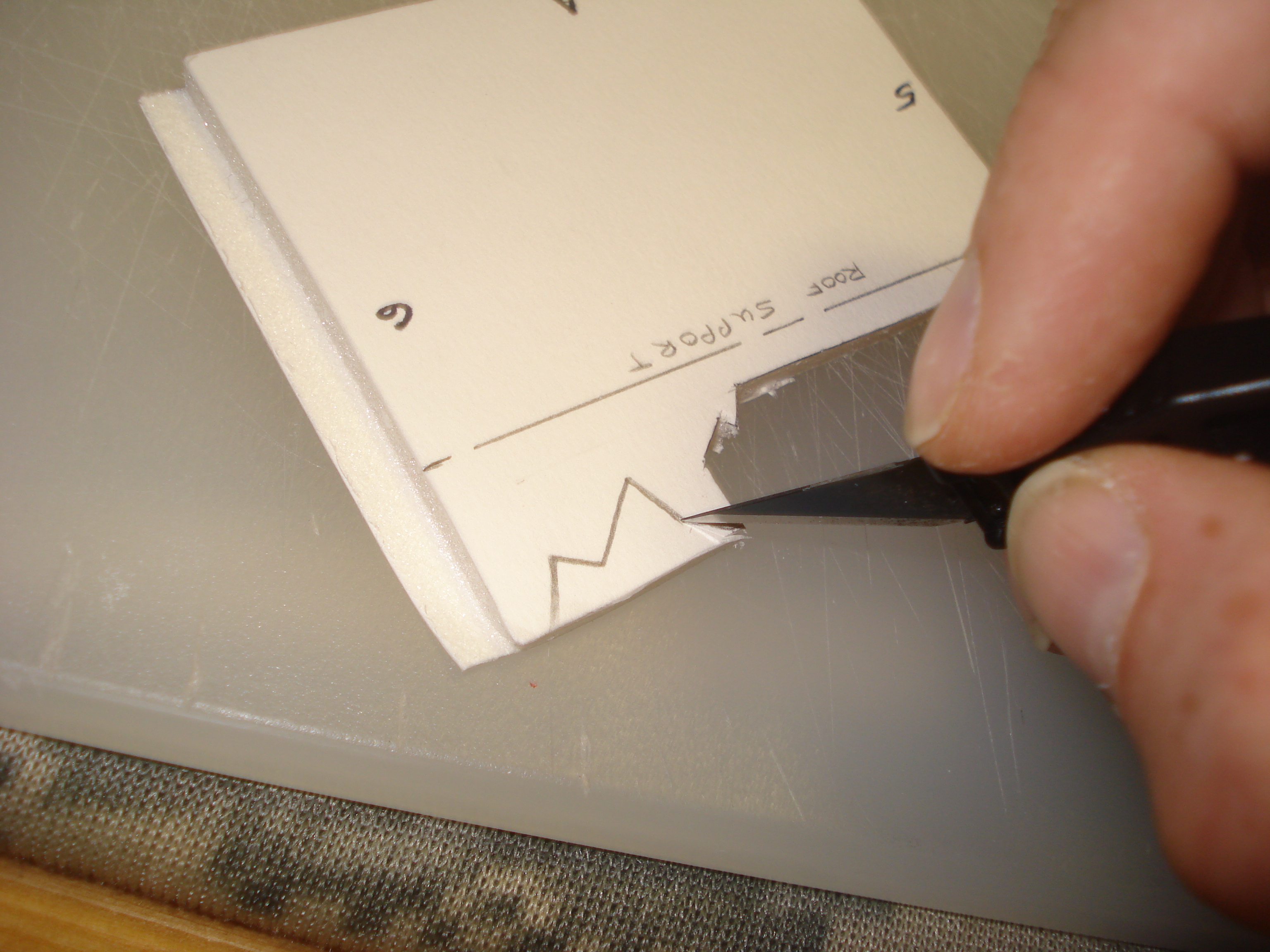 The floor will be cut as flat and perpendicular to the foam core as possible, this will give a nice edge for the walls to be glued and pinned to.